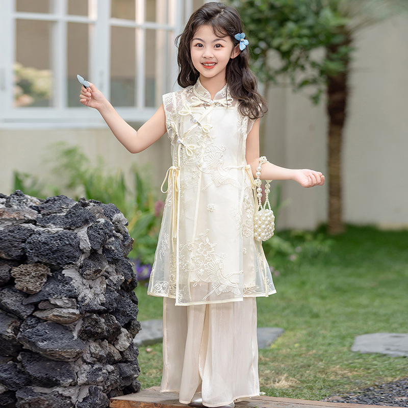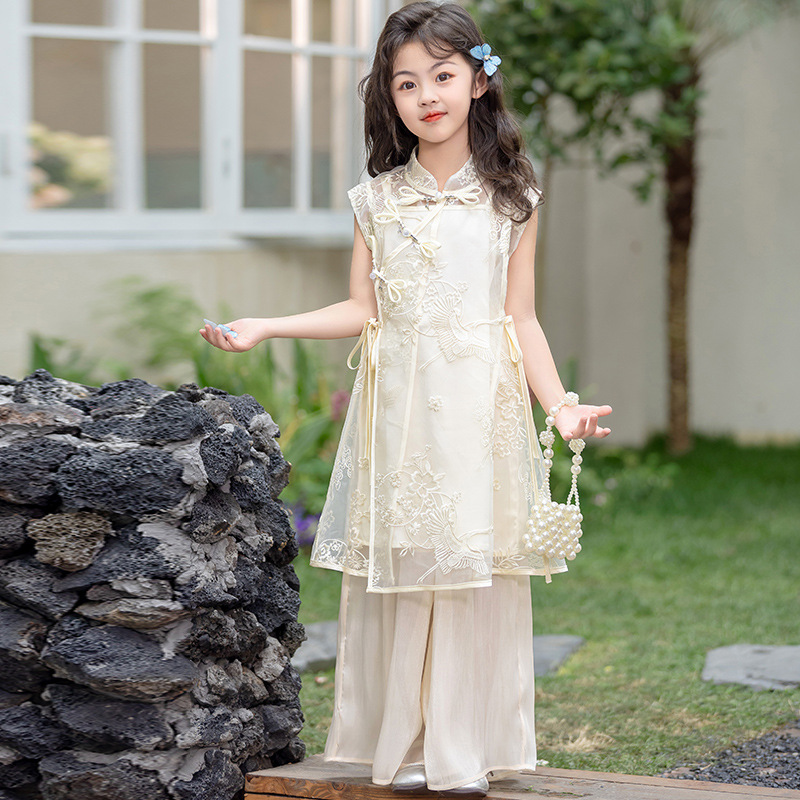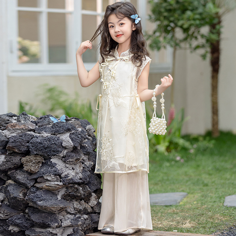Hanfu Girl's National Style Suit Summer 2024 New Children's Summer New Chinese Cheongsam Dress Big Children's Ancient Dress