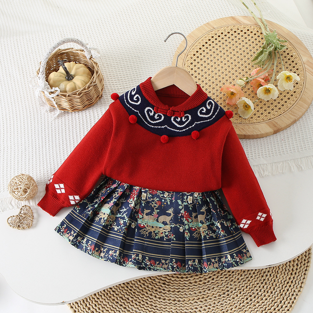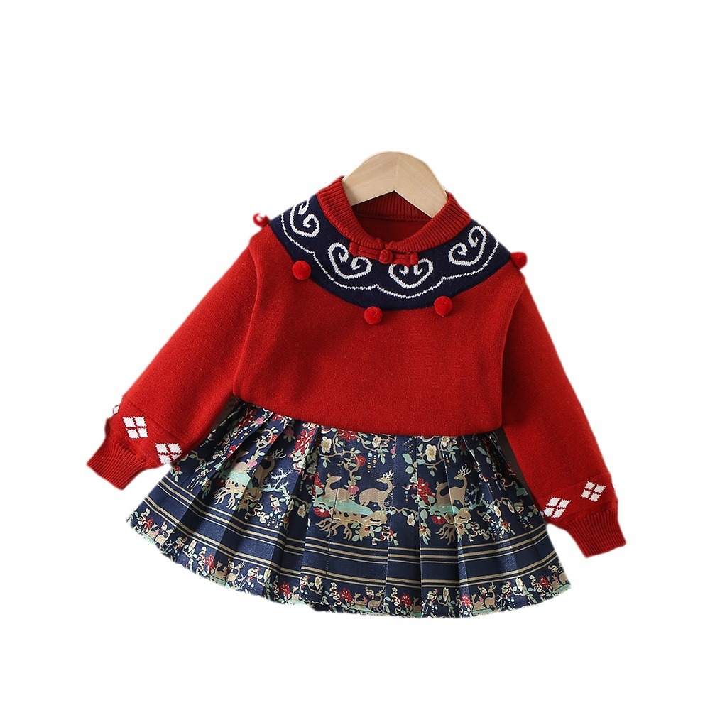 | nameOriginal | Hanfu Girls' New Chinese Style Baby Girls' Sweater Kangsuit Xiangyun Horse-faced Skirt suit Children's Ancient Chinese New Year Clothing |