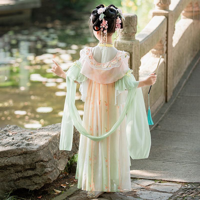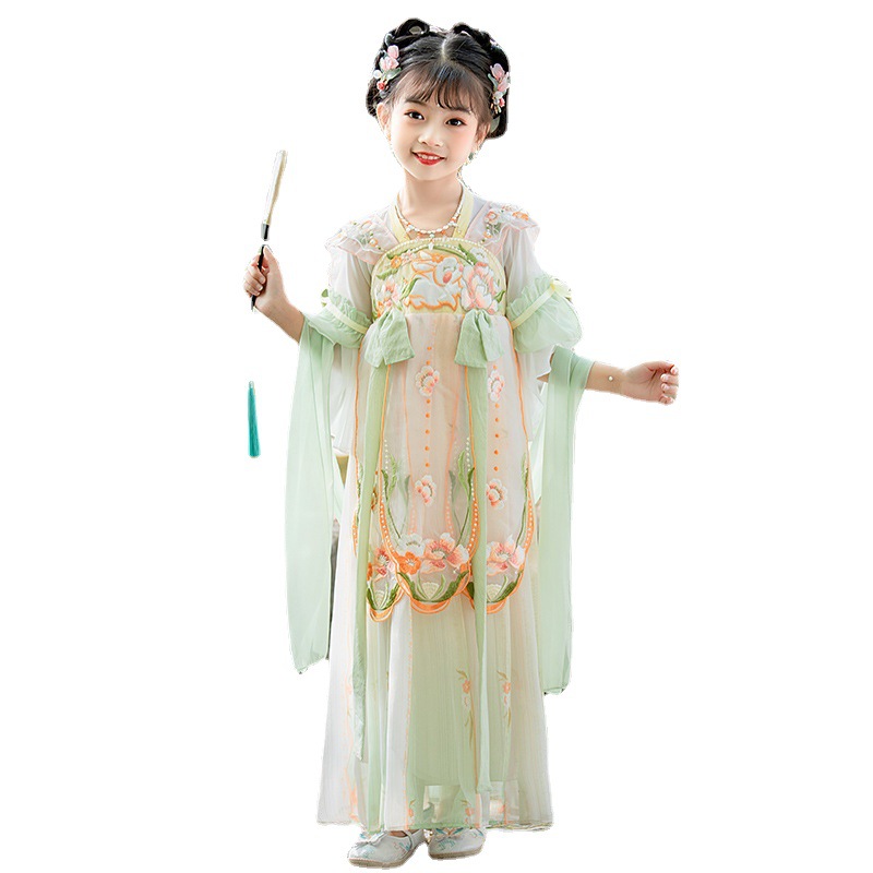 Hanfu Girl’s New Summer Style Thin Girl’s Antique Style Super Fairy Dress Song Dynasty Princess Dress Children’s Tang Suit for Summer Women