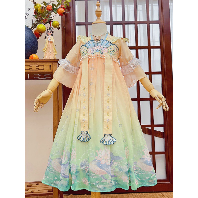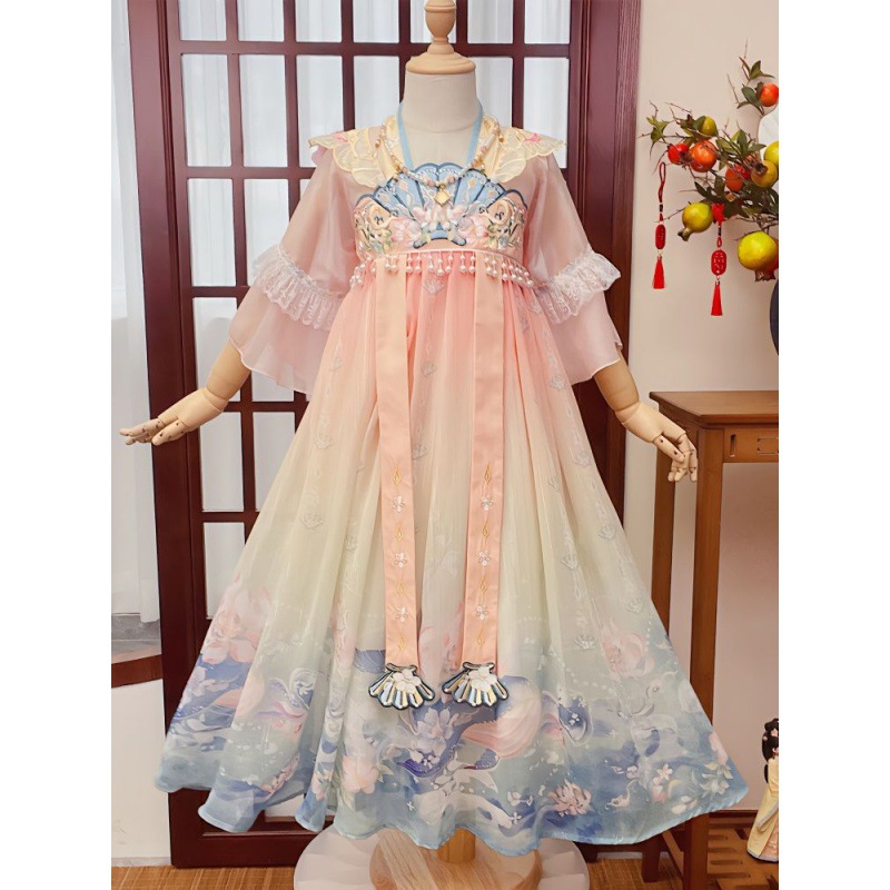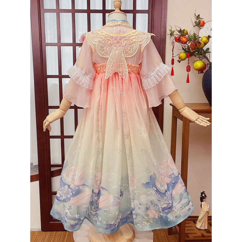 | nameOriginal | Hanfu girls' summer 2024 new ancient style dress little girl Tang suit children's super fairy ancient dress summer dress |
