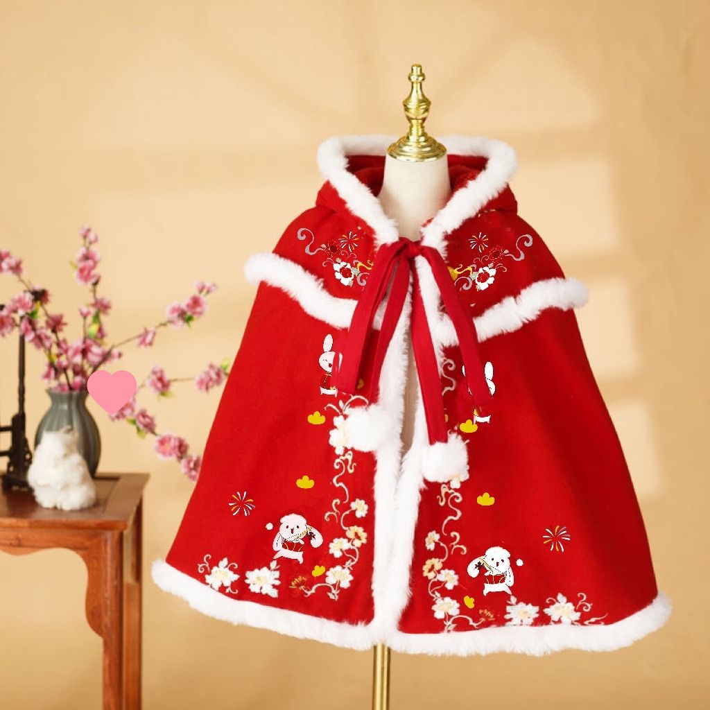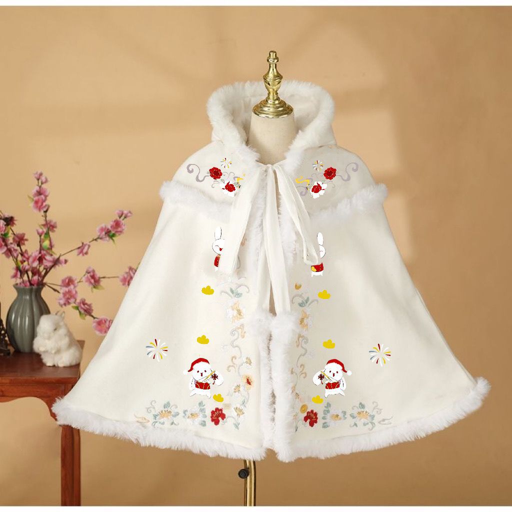 | nameOriginal | Hanfu Girl's Winter Rabbit Embroidered Cloak Children's Thickened Chinese Style Ancient Tang Suit Shawl New Year Clothes |