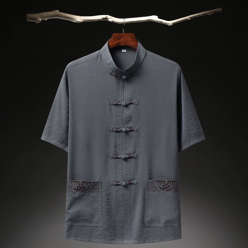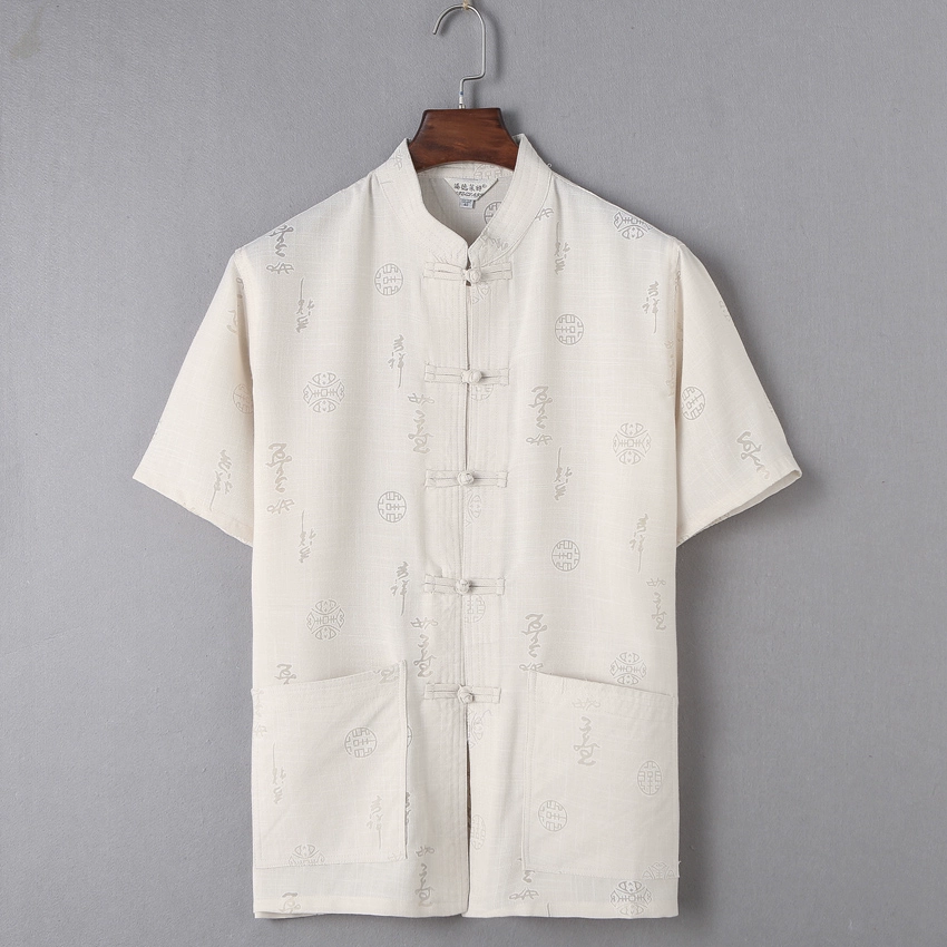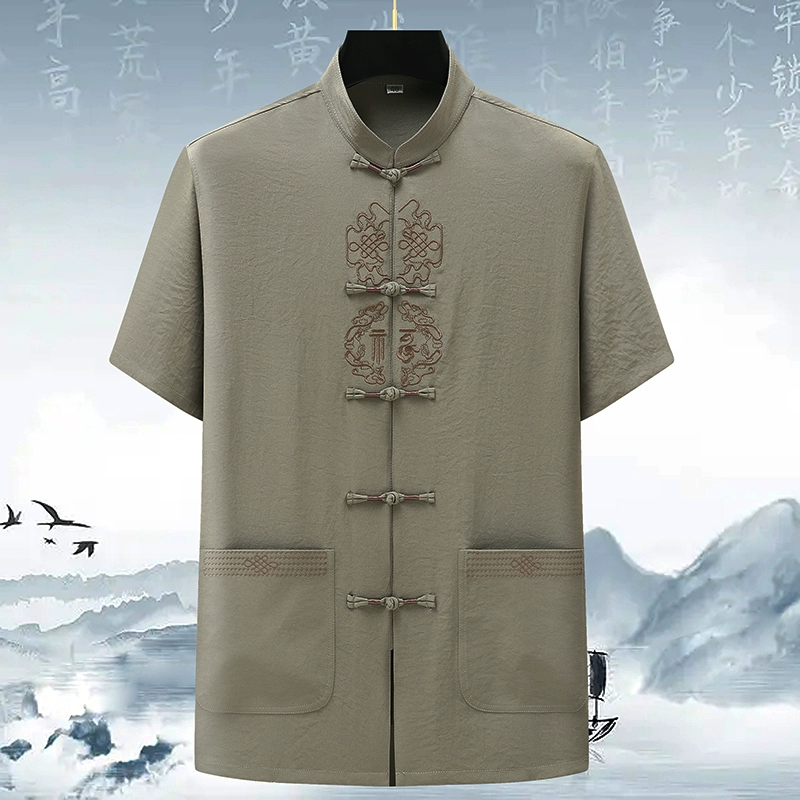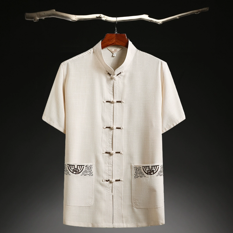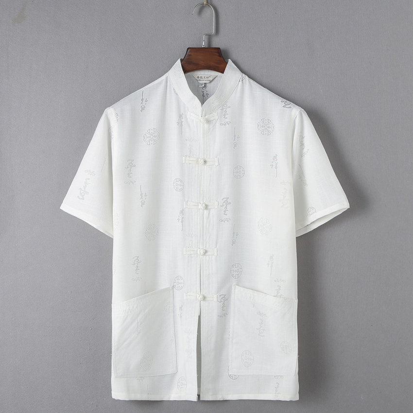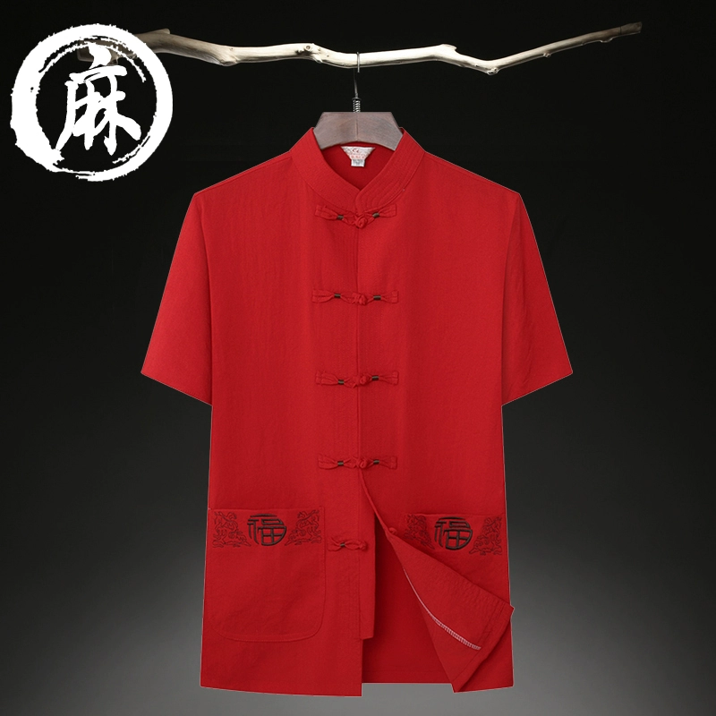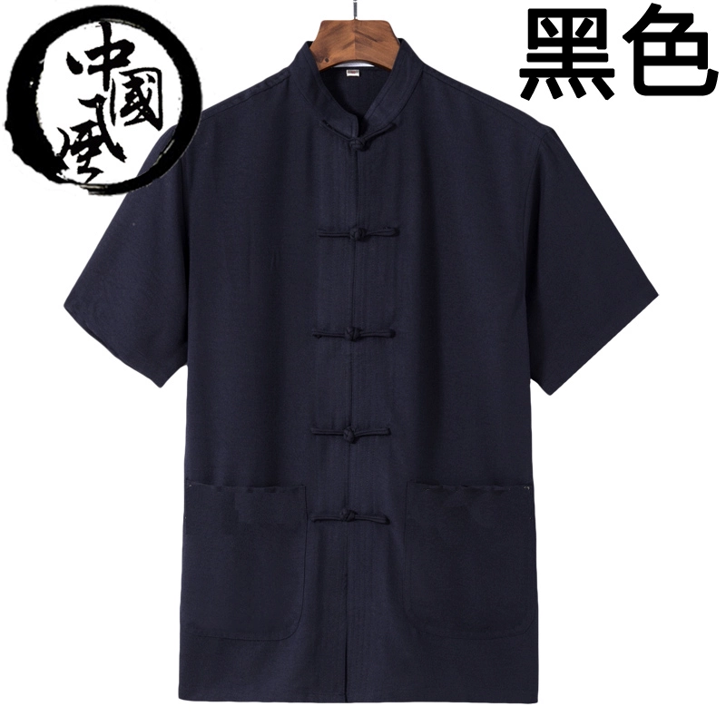 Hanfu half-sleeved linen shirt loose top Tang suit