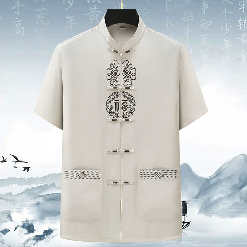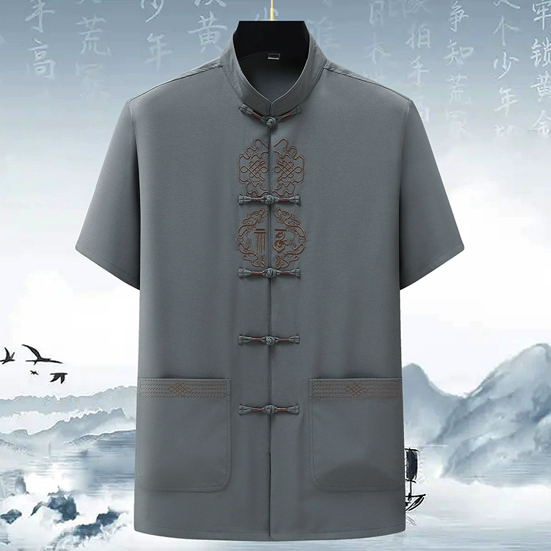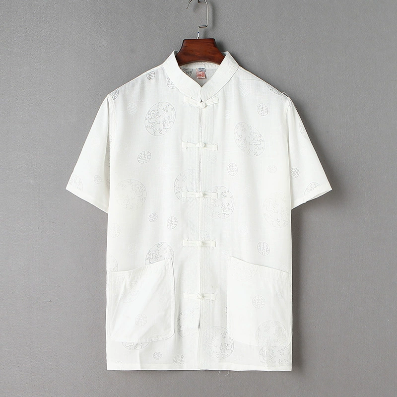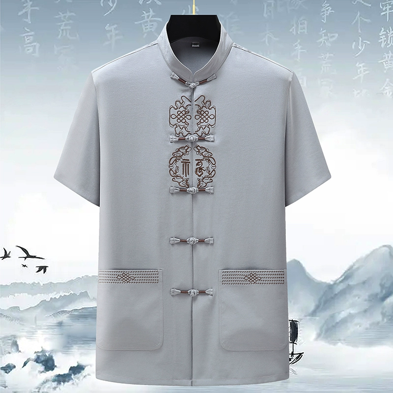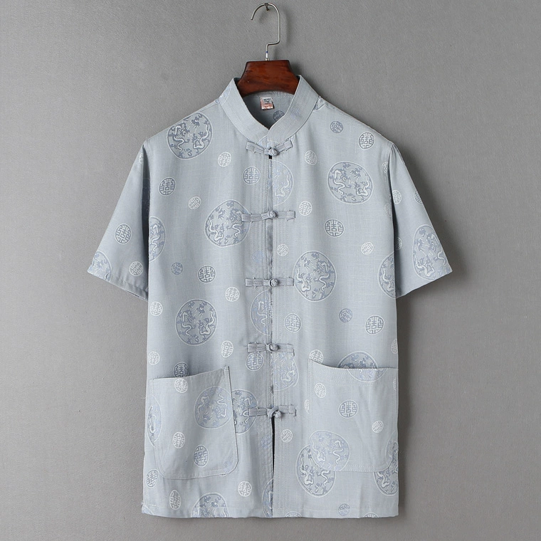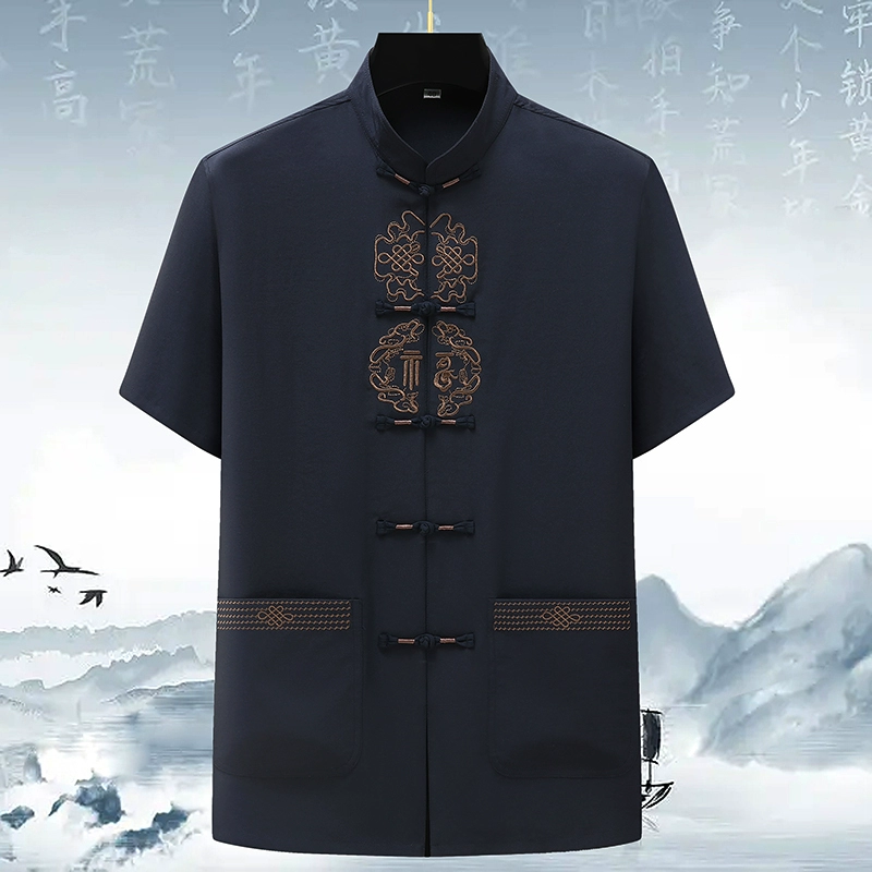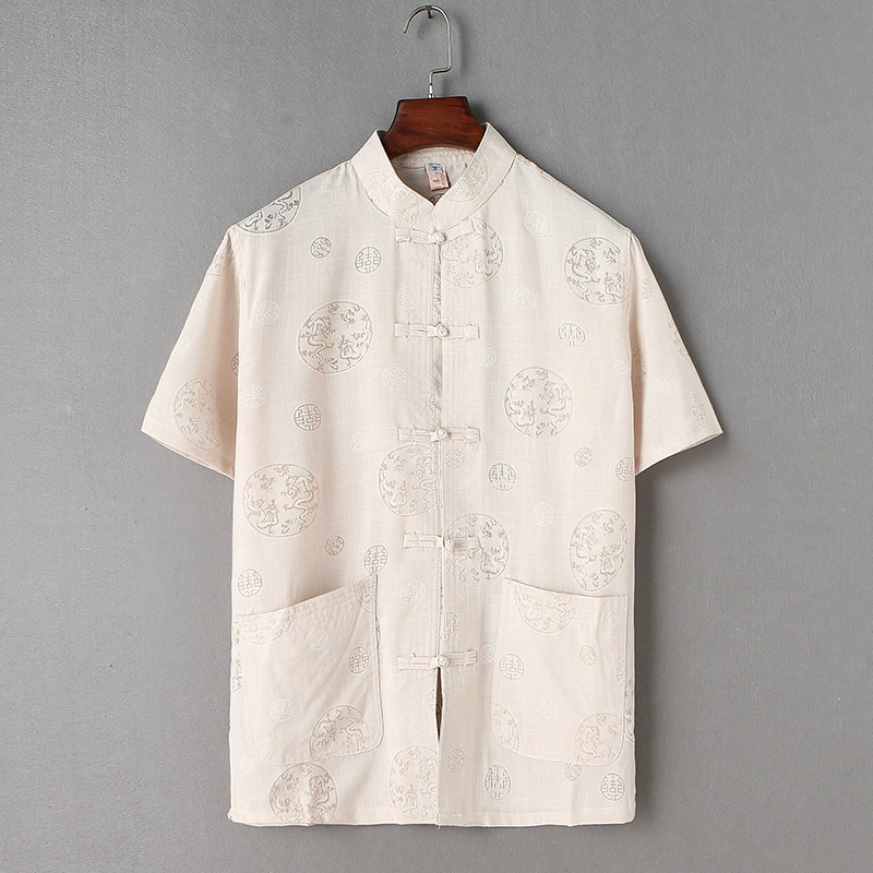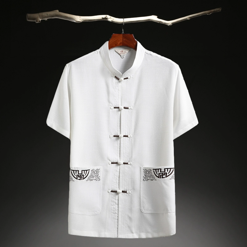 Hanfu half-sleeved linen shirt loose top Tang suit