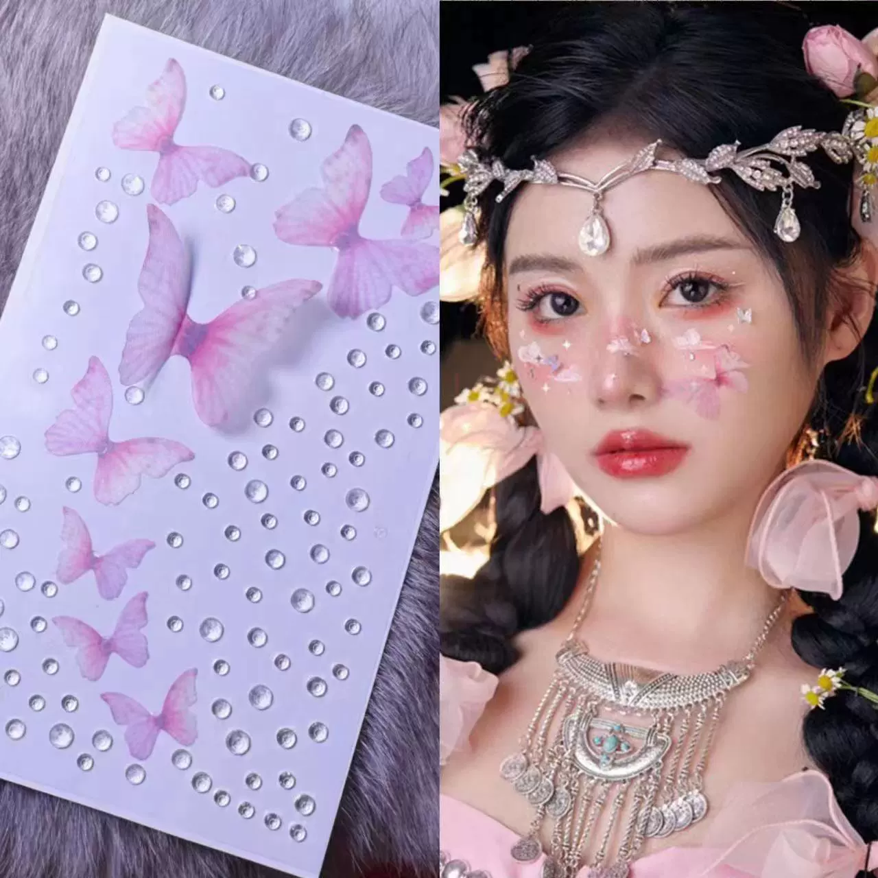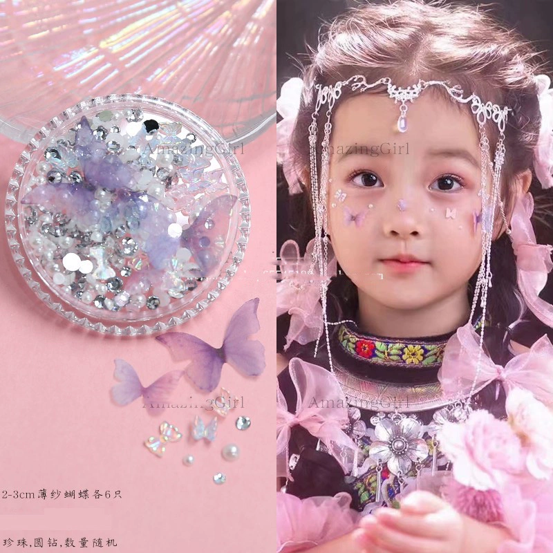 | nameOriginal | Hanfu pearl veneer diamond patch eye makeup bridal makeup makeup butterfly jewelry children stage makeup face tear diamond bright diamond |