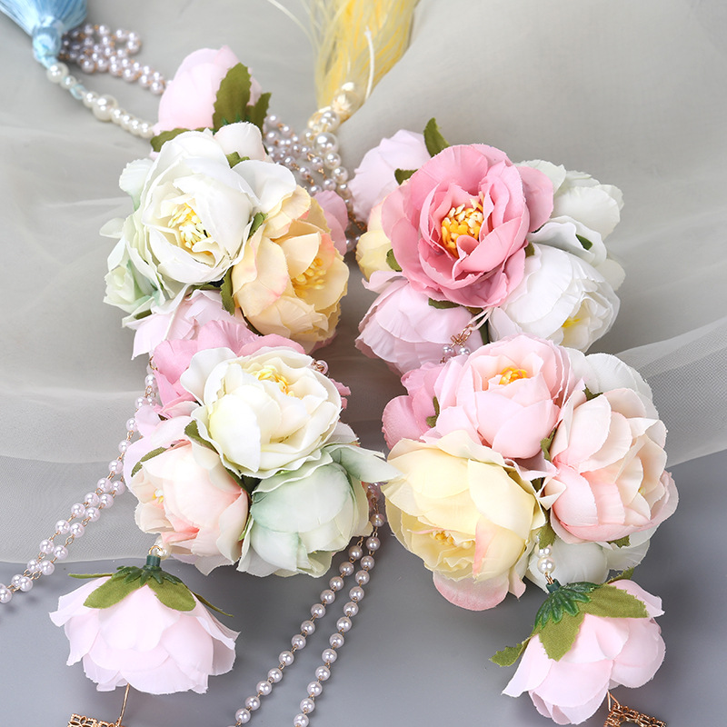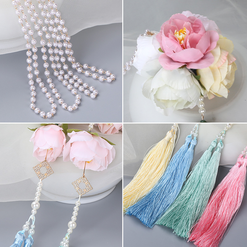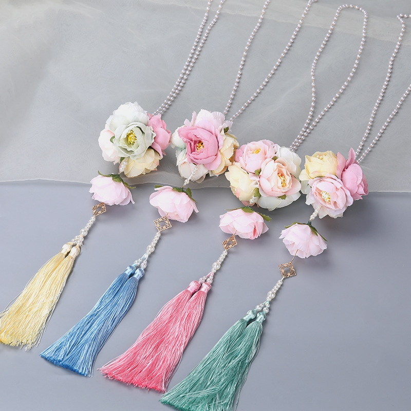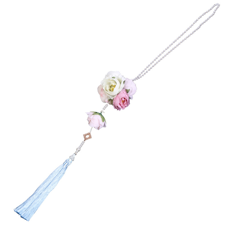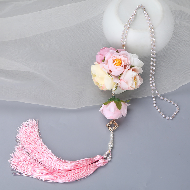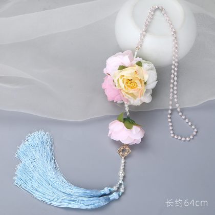 | nameOriginal | Hanfu waist pendant flower forbidden silk flower long tassel flower ball press placket ancient style waist accessories bead chain waist pendant |