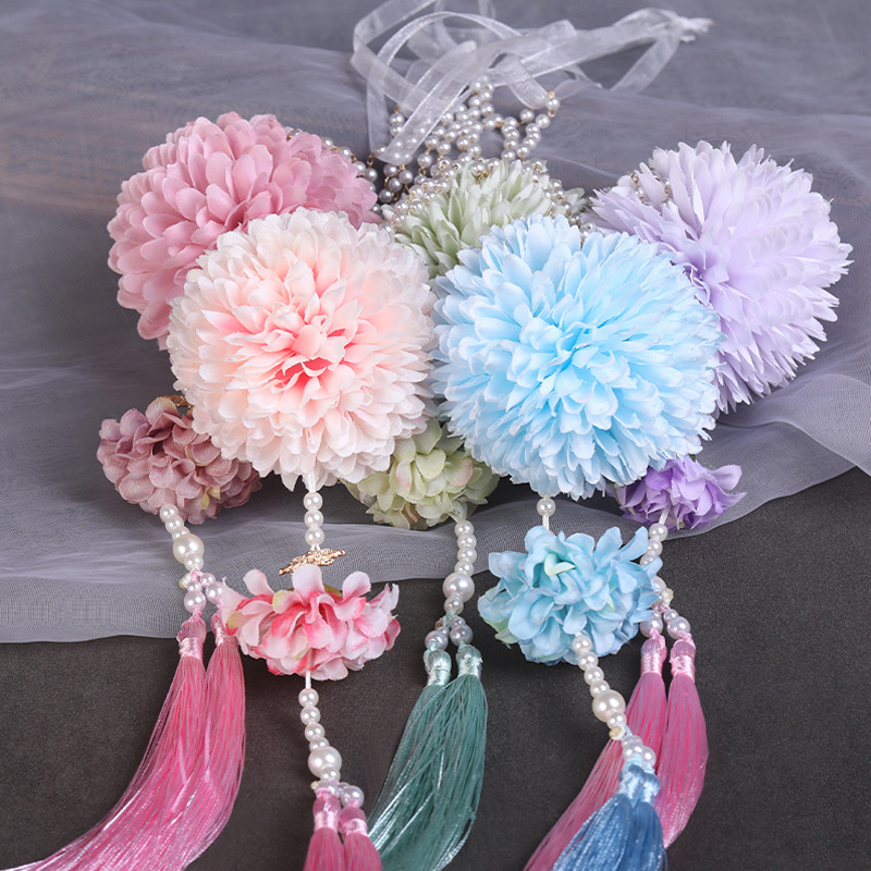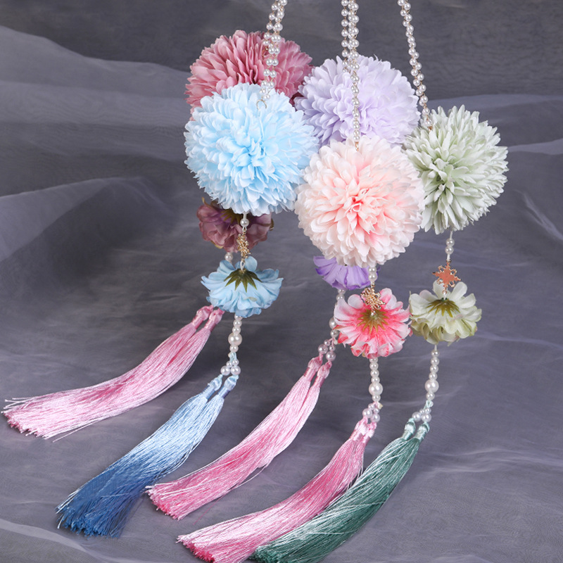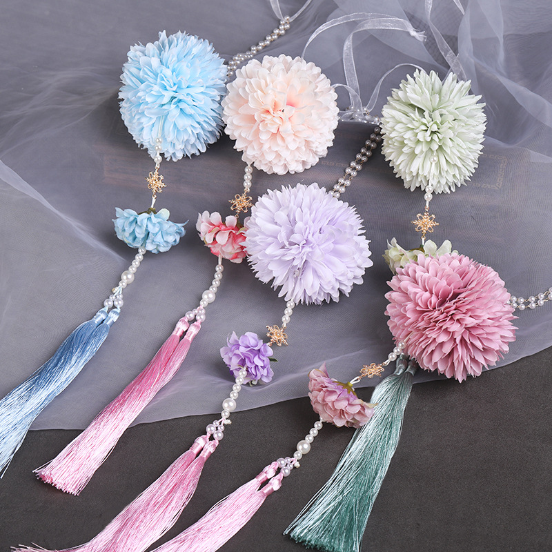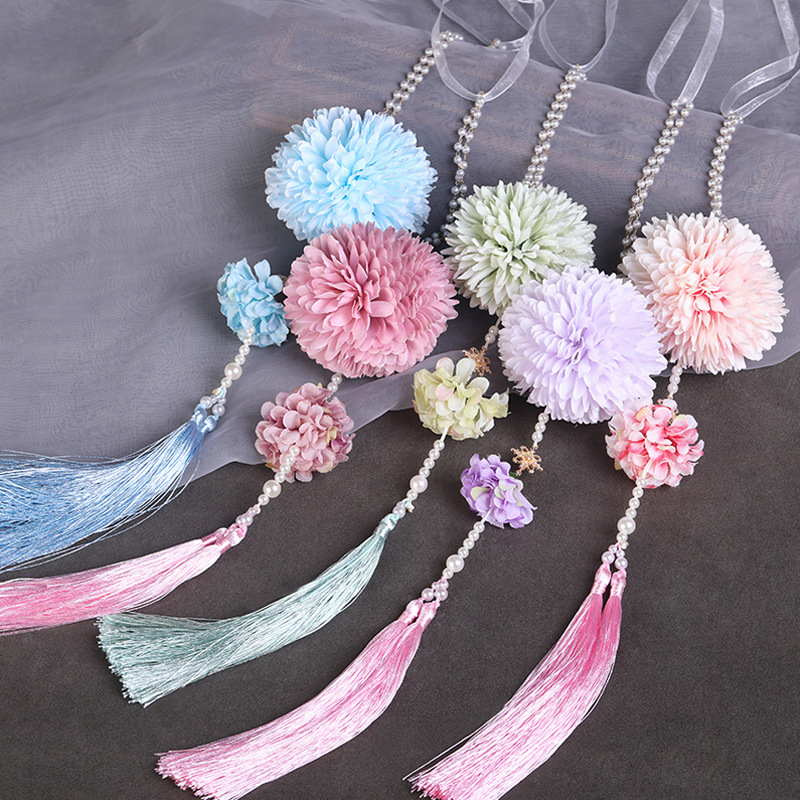 Hanfu Waist Wearable Silk Flower Forbidden Flower Pendant Long Tassel Pressing Skirt Pendant Antique Style Waist Accessories Ancient Clothing Pressing Flap Step