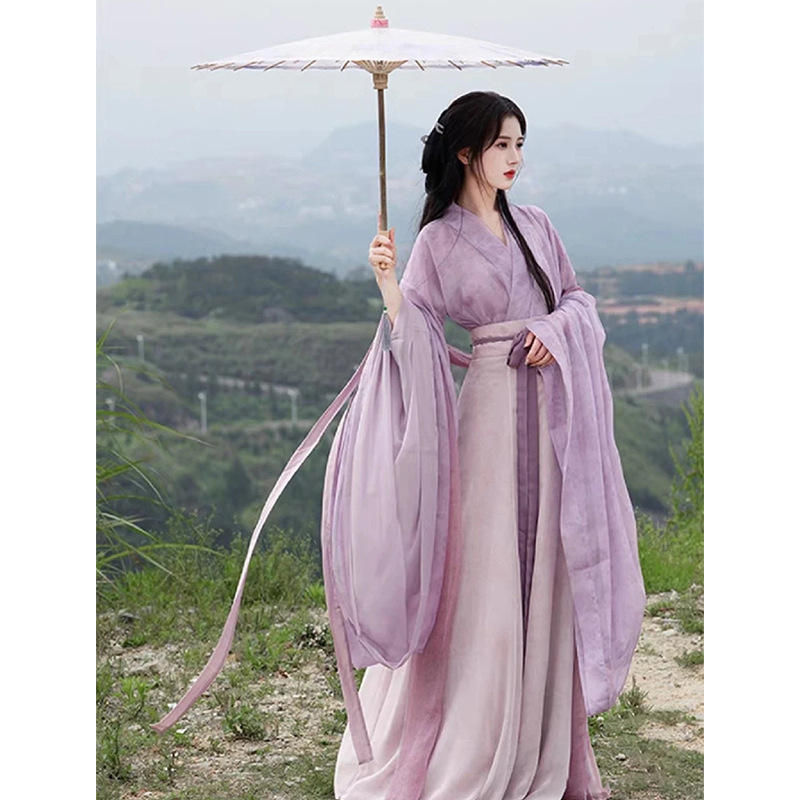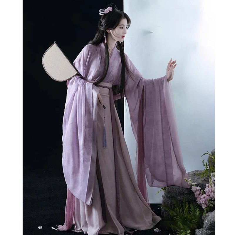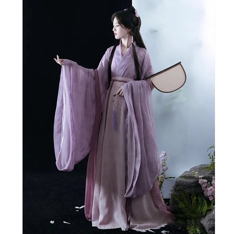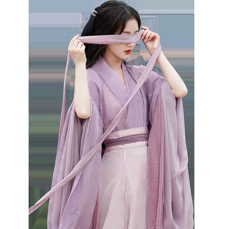 Hanfu Women’s 2024 New Adult Wei Jin Style Handover Collar Ancient Suit Eight Rags Dress Purple Super Fairy Spring and Autumn Ancient Style Suit