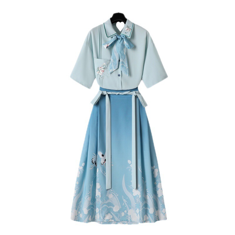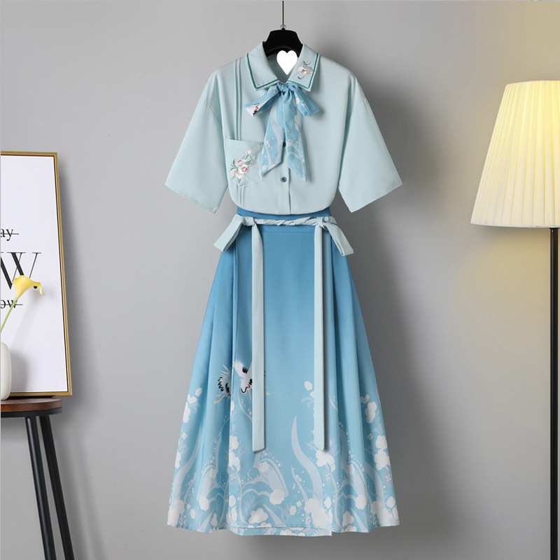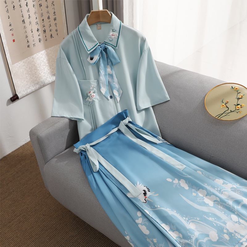 Hanfu Women's Chinese style short shirt suit cropped horse face improved spring and summer Han element fairy ancient costume