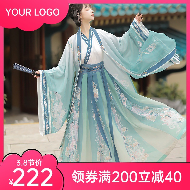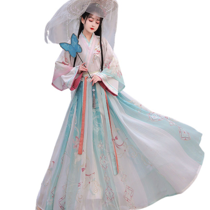 Hanfu women’s spring and autumn Jin genuine goods original song style waist cross collar skirt super fairy ancient style Daily Chinese style