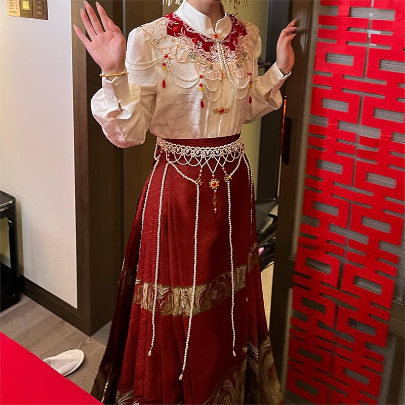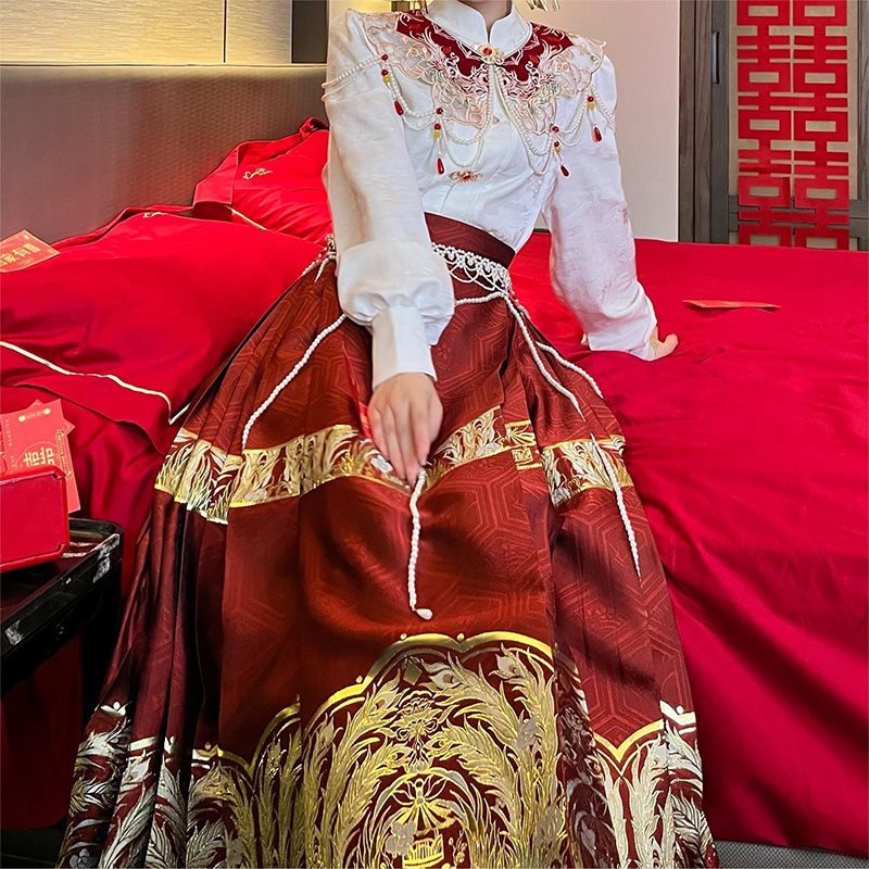 | nameOriginal | Hanfu Women's Wedding Clothing Toasting Clothing Weaving Gold Makeup Flower Horse-faced Skirt suit Embroidered Cloud Shoulder New Chinese Style Daily Improved Hanfu |
