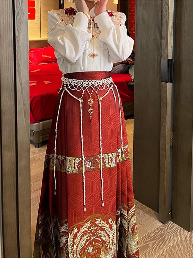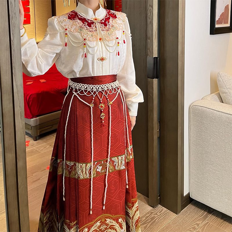 | nameOriginal | Hanfu Women's Wedding Clothing Toasting Clothing Weaving Gold Makeup Flower Horse-faced Skirt suit Embroidered Cloud Shoulder New Chinese Style Daily Improved Hanfu |
