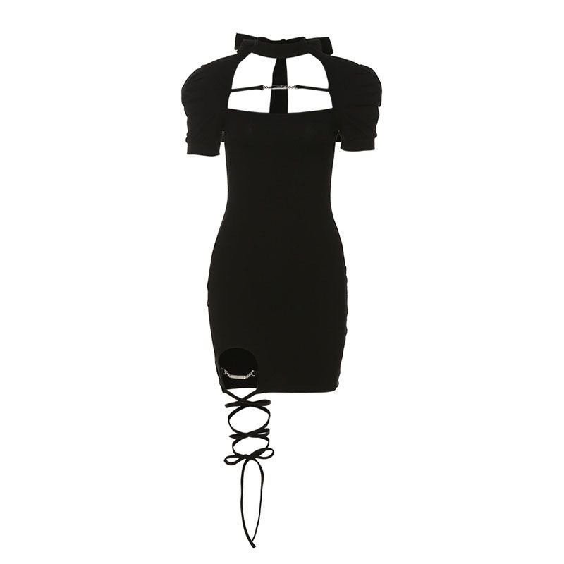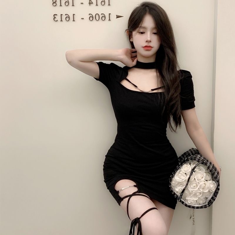 | nameOriginal | Hanging Neck Strap Hot Girl Dress Women's 2024 Night Spring and Summer New Pure Desire Short-sleeved Small Slim Hip Dress |