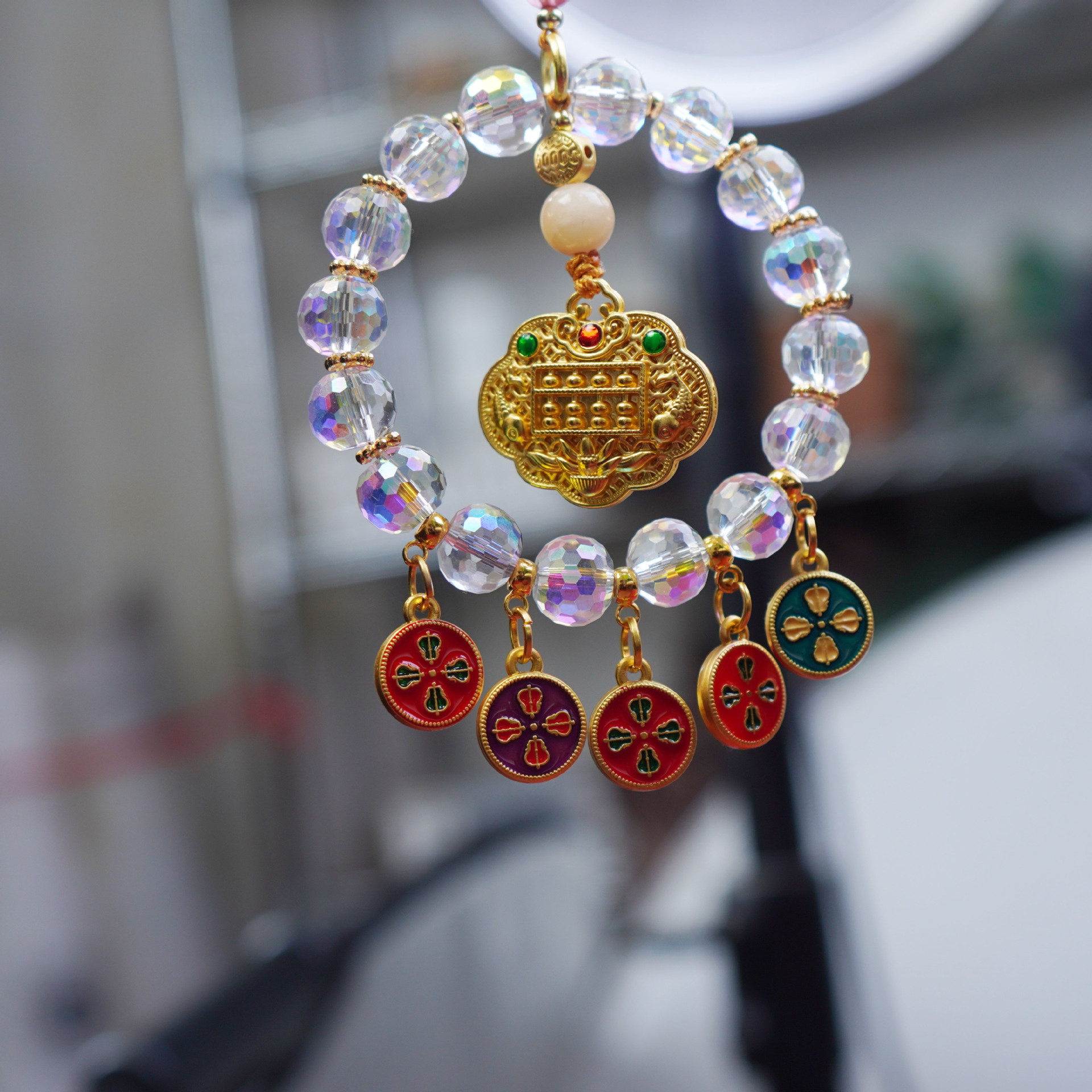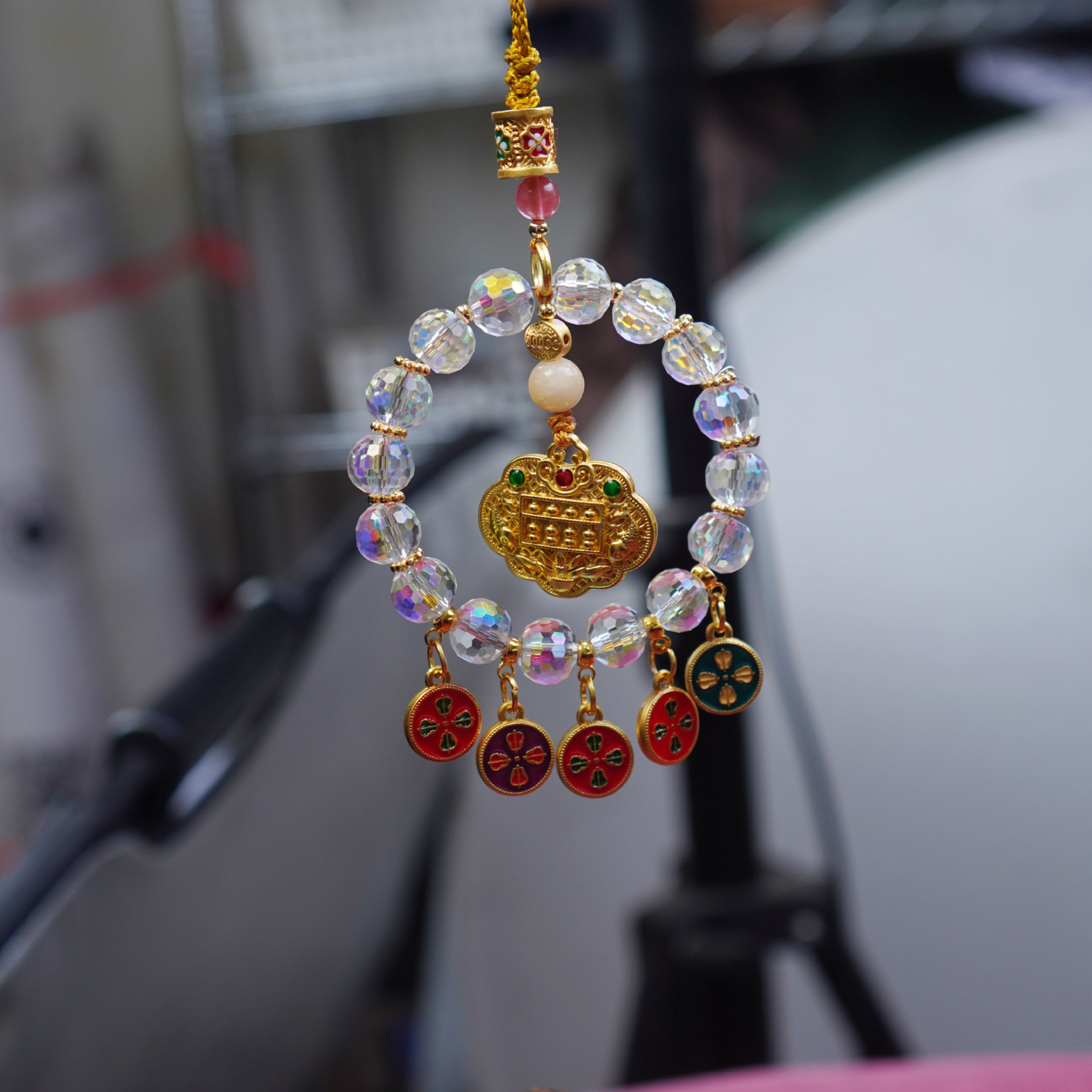 Hangzhou Lingyin No.5 Road God of Wealth Abacus Car Hanging Successfully Safe Nafu Car Interior Crystal Beaded Car Hanging