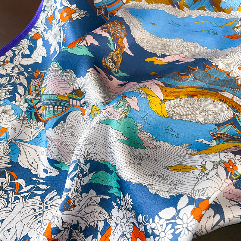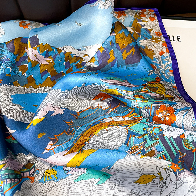 Hangzhou silk autumn all-match Fairy Tale Kingdom 100% mulberry silk scarf silk scarf decorative scarf small square scarf