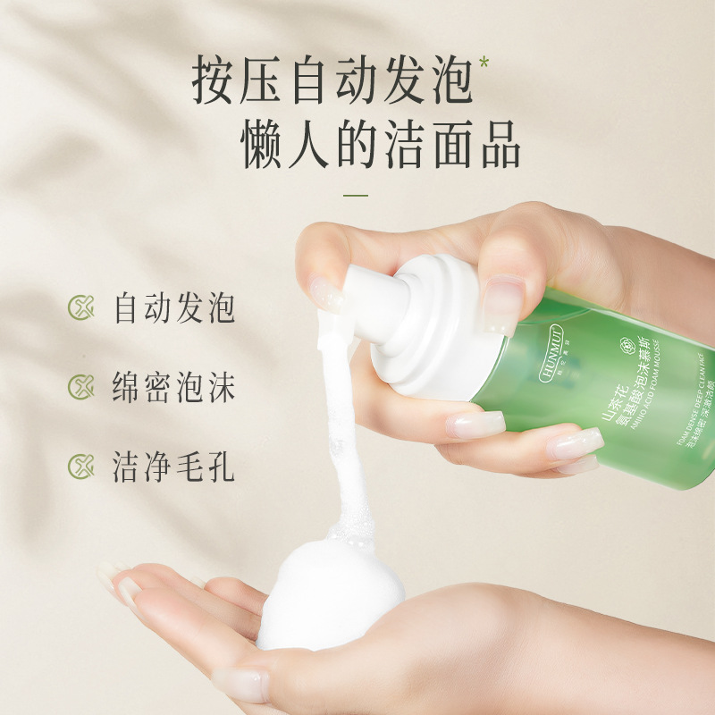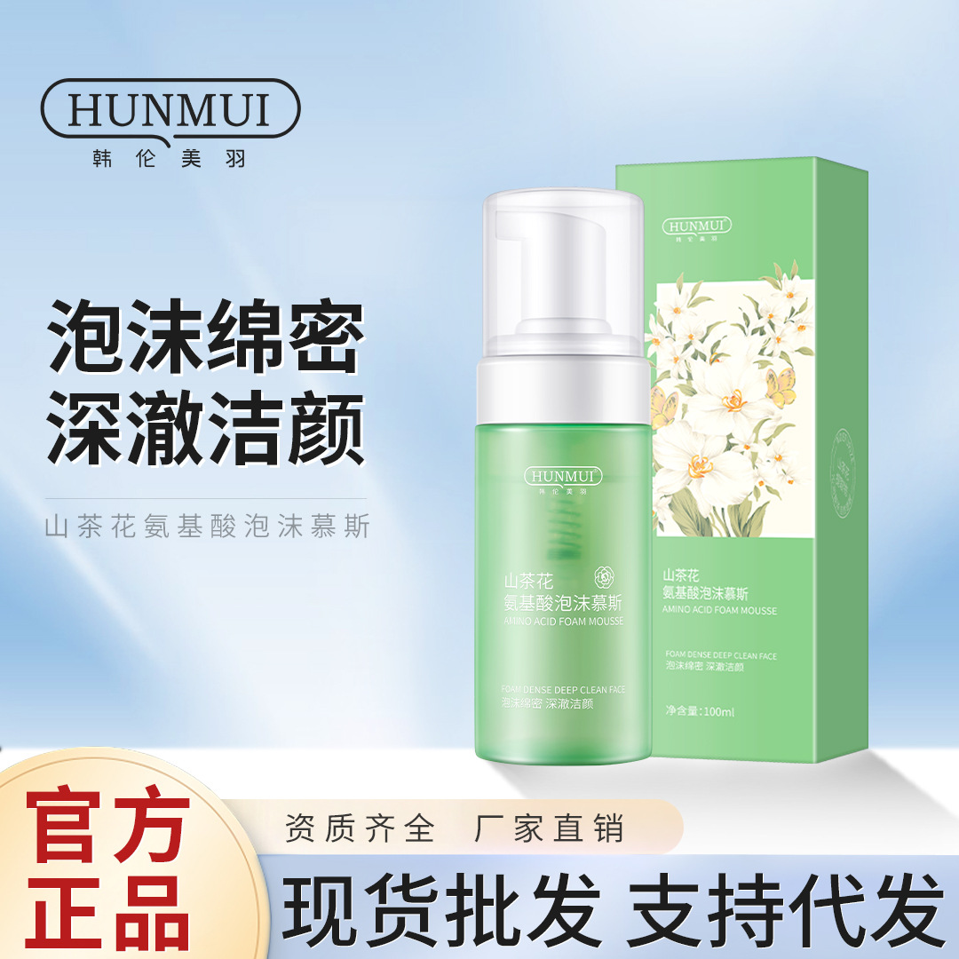 Hanlun Meiyu Camellia amino acid foam mousse deep cleansing Gentle Hydrating dense foam facial cleanser batch