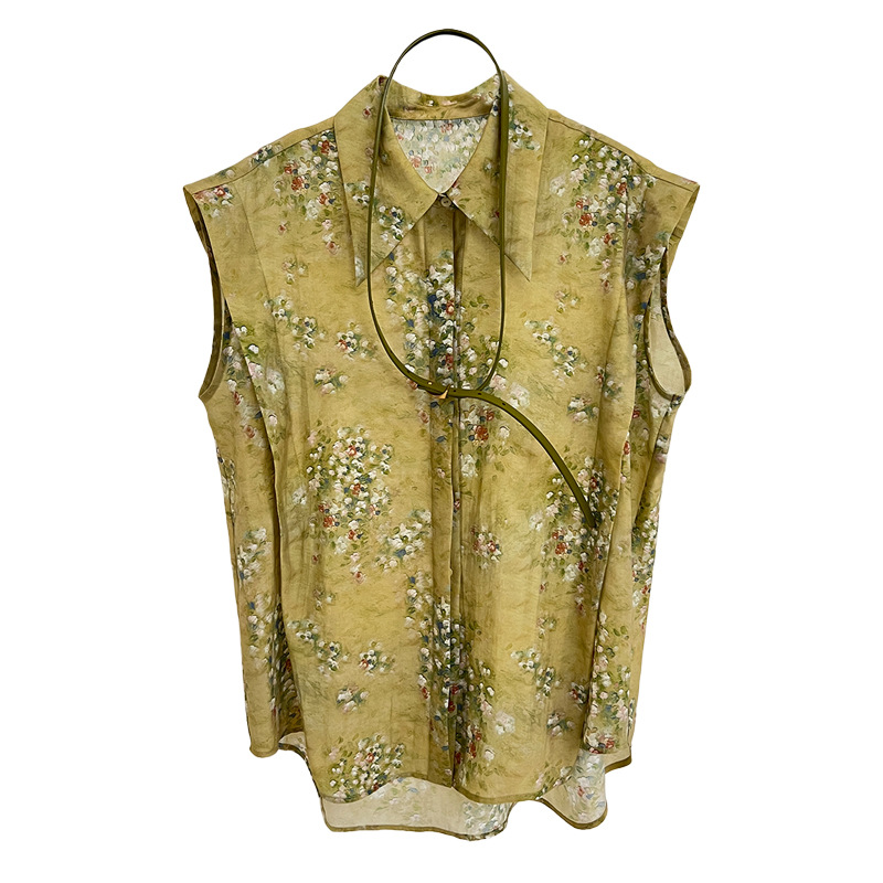 | nameOriginal | HANNA with Sleeveless Tencel Shirt Women's 2024 Summer New Printed Lapel Shirt Waist Tight Top H16530 |