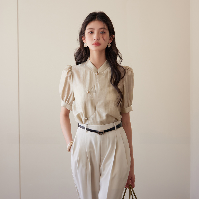 | nameOriginal | HANNA with the new Chinese style improved shirt women's summer new short sleeve design feeling stand collar shirt H16568 |