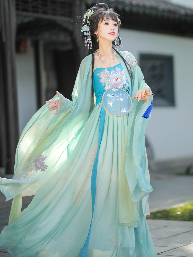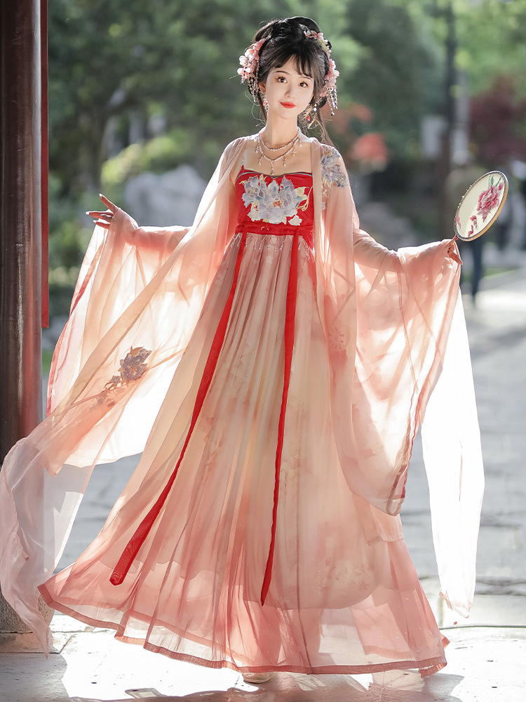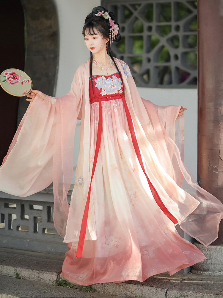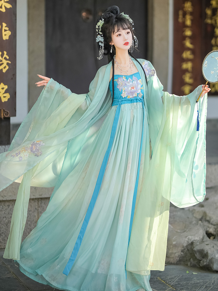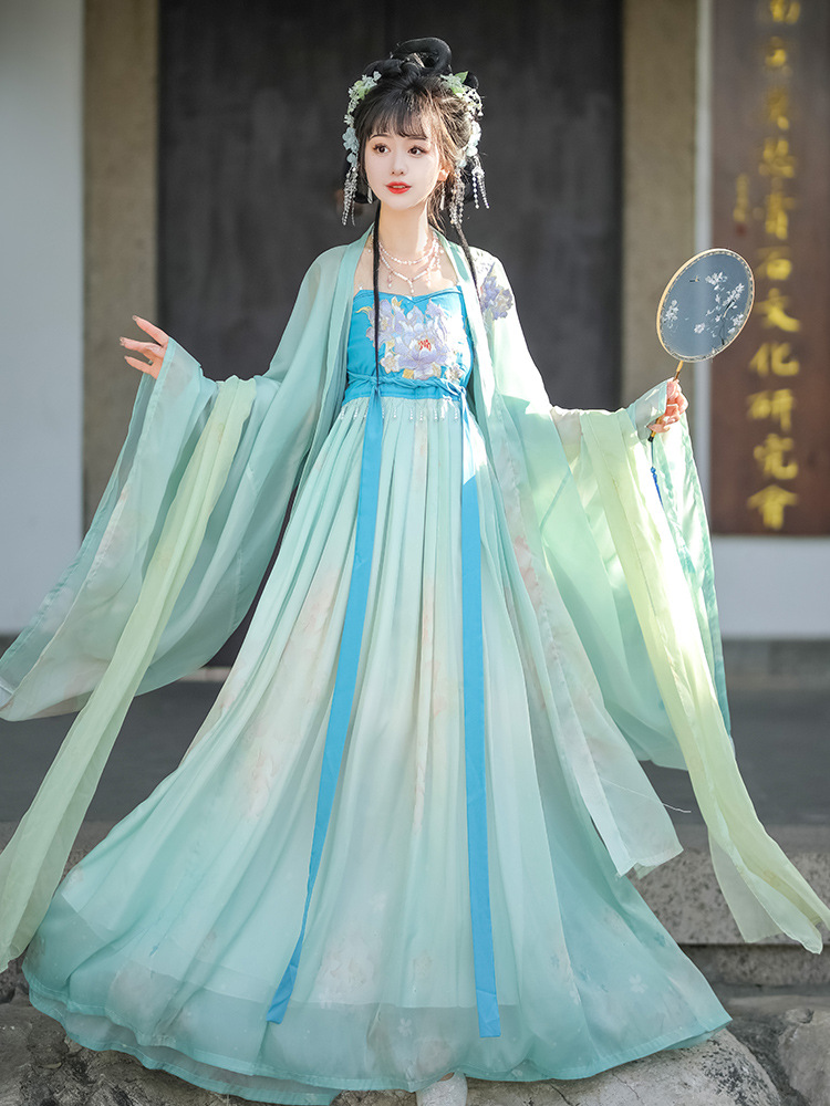Hanyu Kui New Original Tang Style Hanfu Women’s Ancient Dress Embroidered Chebula Skirt Big Sleeve Shirt Chest Fairy Chinese Element Suit Summer