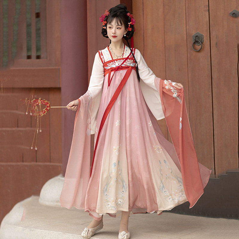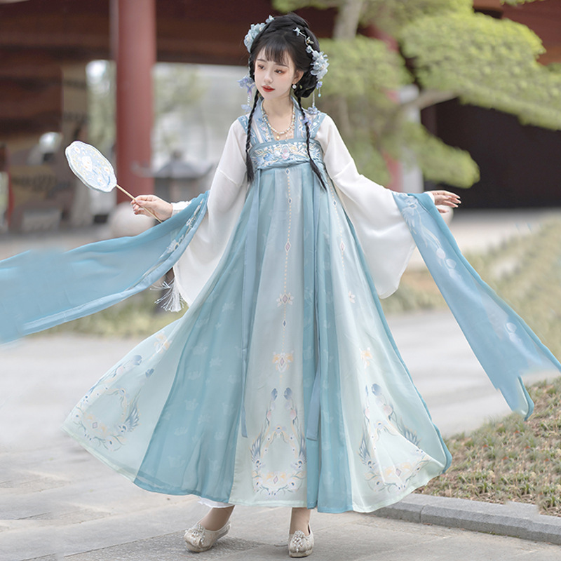 Hanyunting original Hanfu women’s autumn Tang style Han element chest-breaking dress three-color embroidered suspender dress Daily style