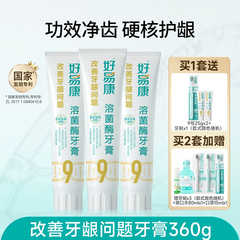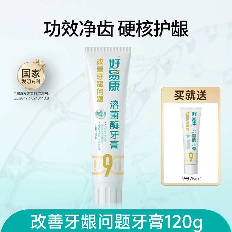 | nameOriginal | Haoyikang Lysozyme Toothpaste No. 9 120g*3 improves gums, inhibits plaque, freshens breath, and whitens teeth |