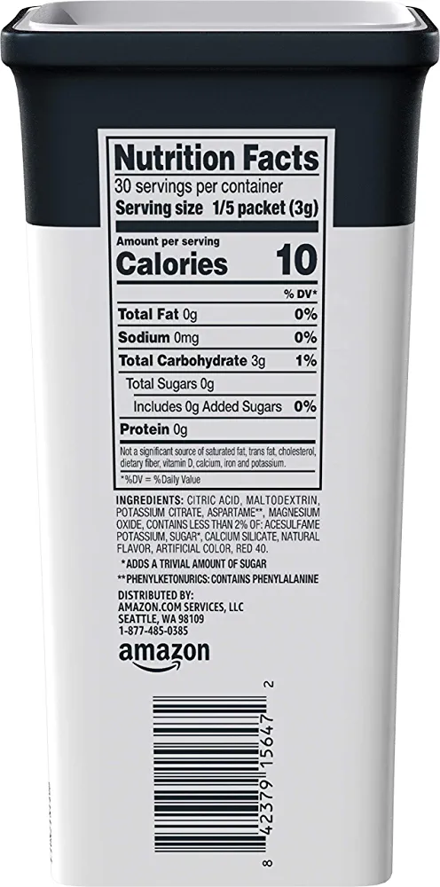 | nameOriginal | Amazon Brand – Happy Belly Drink Mix Singles, Pink Lemonade6 Count(Pack of 1) (Previously Solimo) |