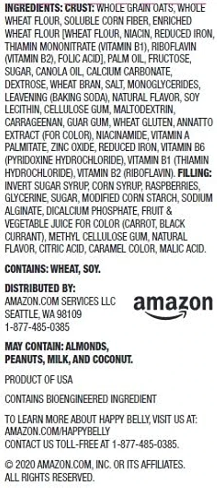 | nameOriginal | Amazon Brand – Happy Belly Fruit & Grain Cereal Bars, Raspberry, 8 Count |