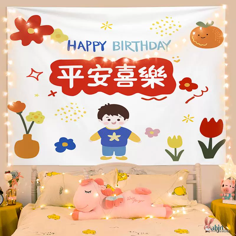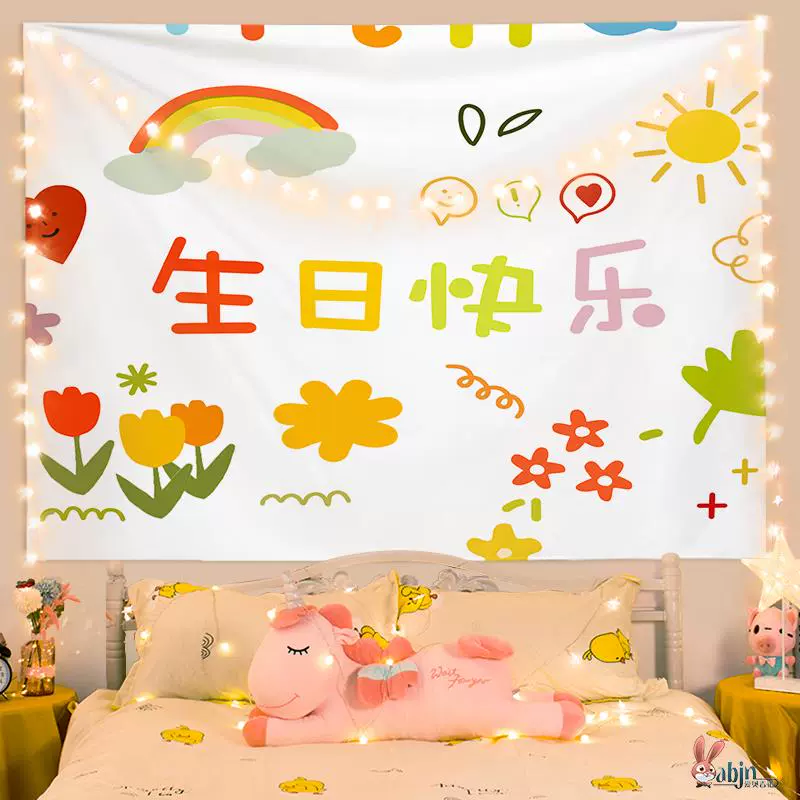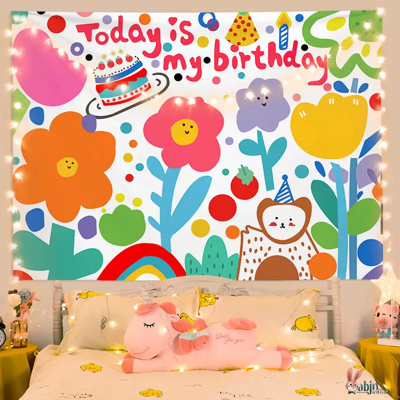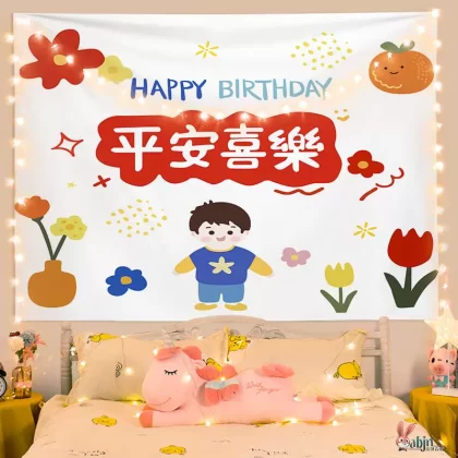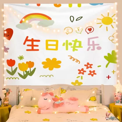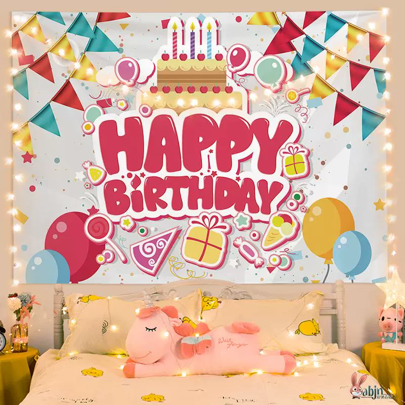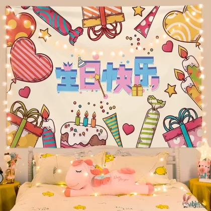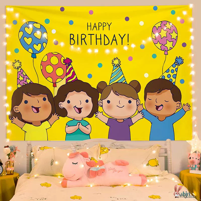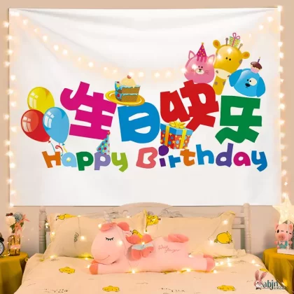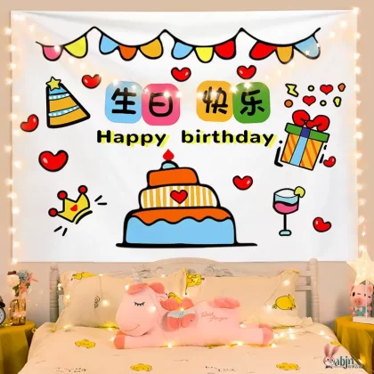 | nameOriginal | Happy birthday hanging cloth background cloth cute cartoon children's party layout decorative wall cloth |