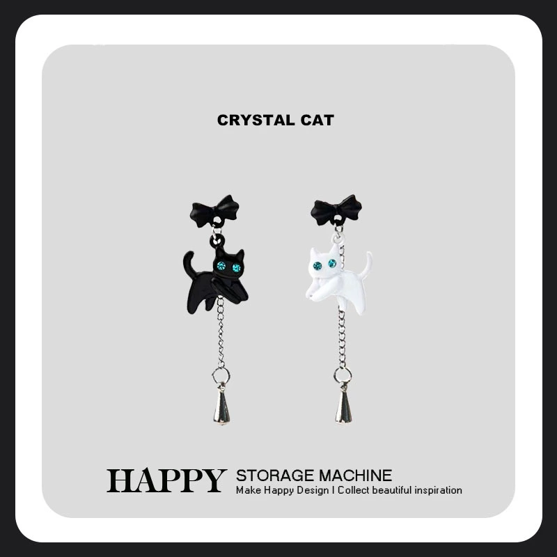 | nameOriginal | HAPPY black and white cat girl cute alloy earrings |