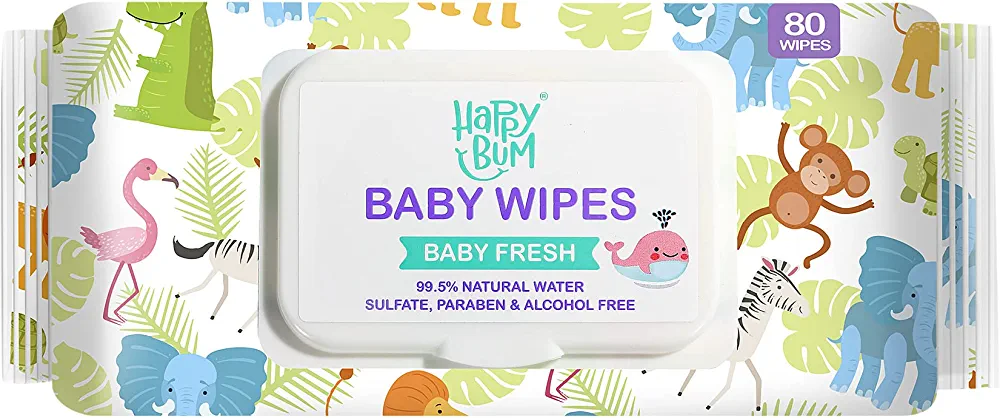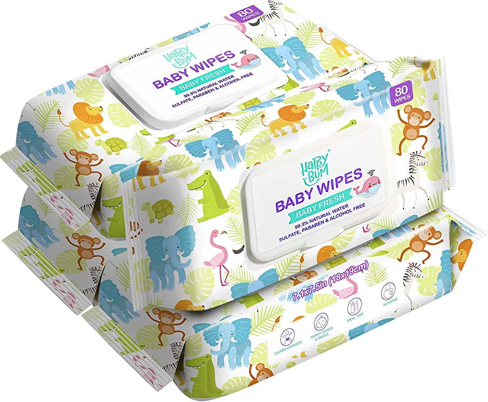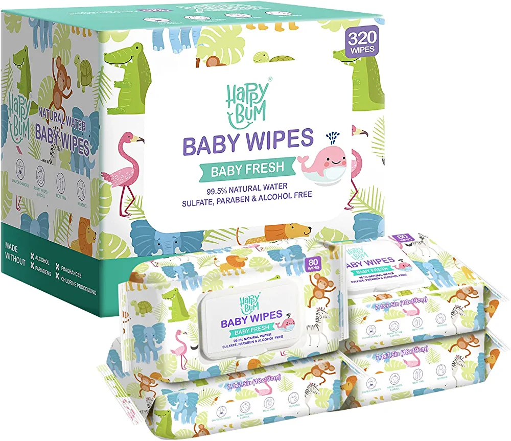 | nameOriginal | Baby Wipes – HAPPY BUM Sensitive Water Baby Diaper Wipes, Hypoallergenic, Unscented, 4 Flip-top packs (320 Wipes Total) |