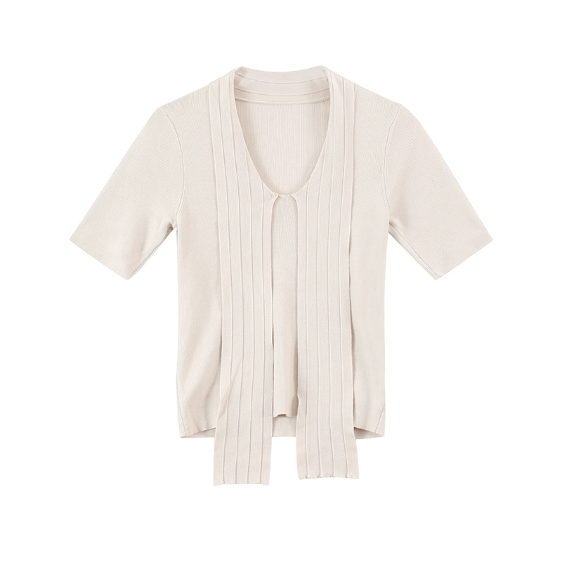 | nameOriginal | Happy Happy Golden Secretary wears a designer short-sleeved sweater for women with summer temperament, gentle slimming strappy top |