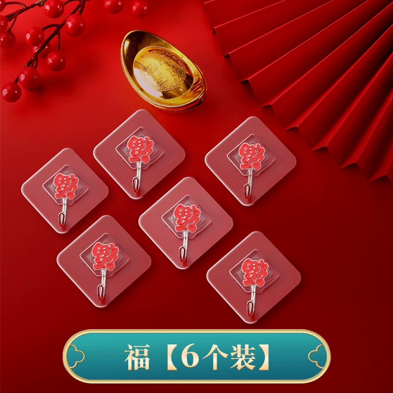 | nameOriginal | Happy new year punch-free adhesive red hook with blessing character |