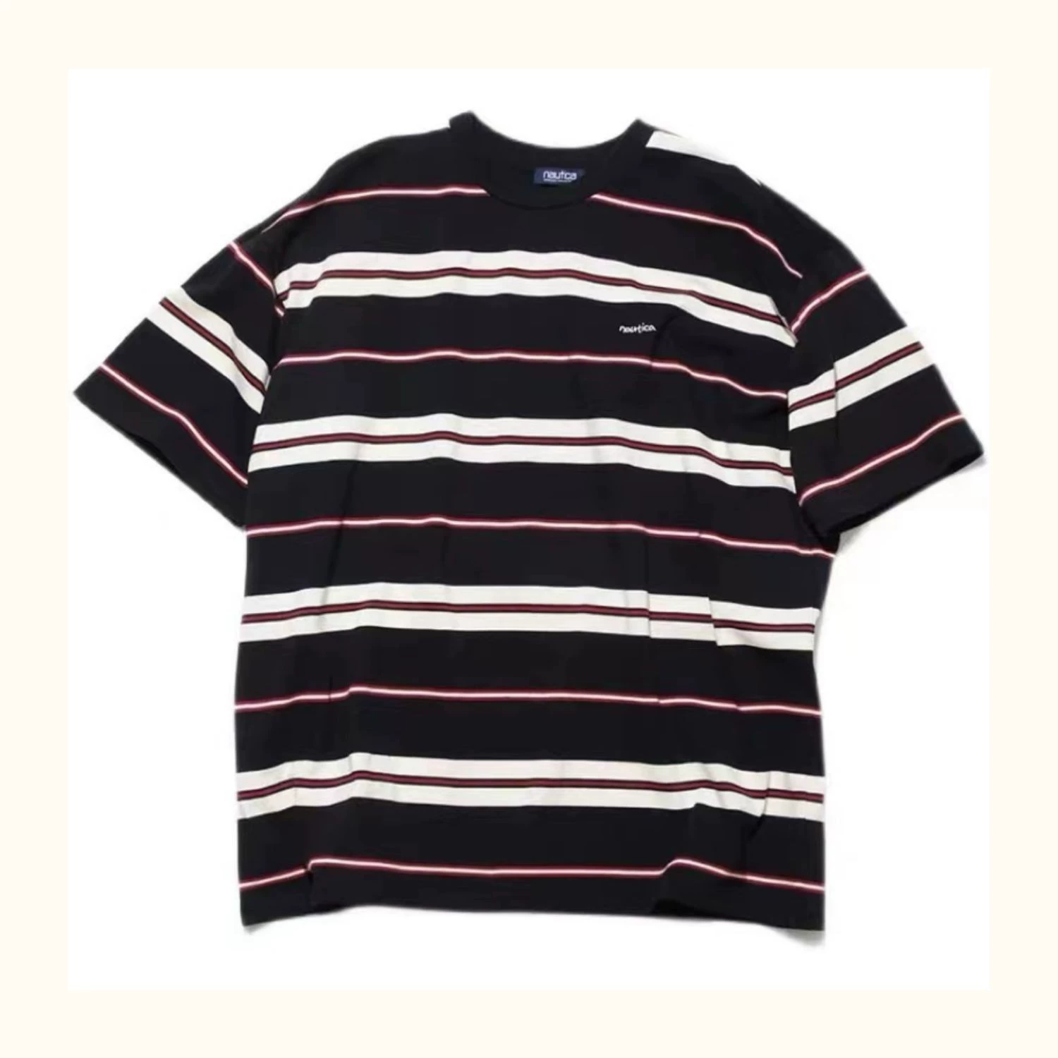 | nameOriginal | Hasegawa supervises Japanese fashion brand striped embroidery round neck loose short-sleeved heavyweight T-shirt casual men and women cityboy |