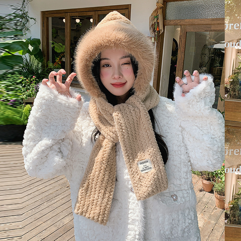 | nameOriginal | Hat and scarf all-in-one women's winter versatile cute plush hat warm winter thickened anti-freezing windproof hooded scarf |