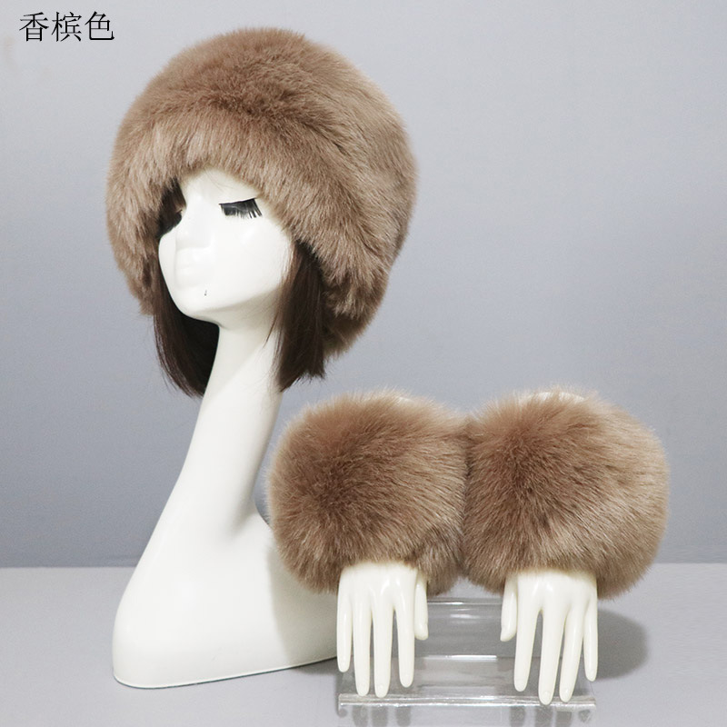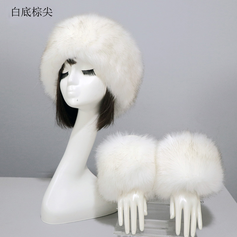 | nameOriginal | Hat cuff two-piece suit autumn and winter warm imitation fur flat top hat fur oversleeve foreign trade black imitation fox fur |