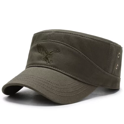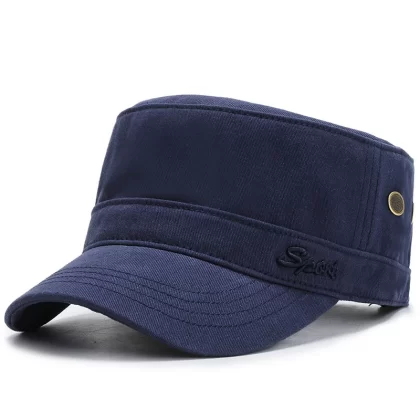 Hat Men’s Spring and Autumn Peaked Cap Korean Style Trendy Sun Shade Hat Outdoor Short Brim Embroidered Cotton Casual Flat Top Hat