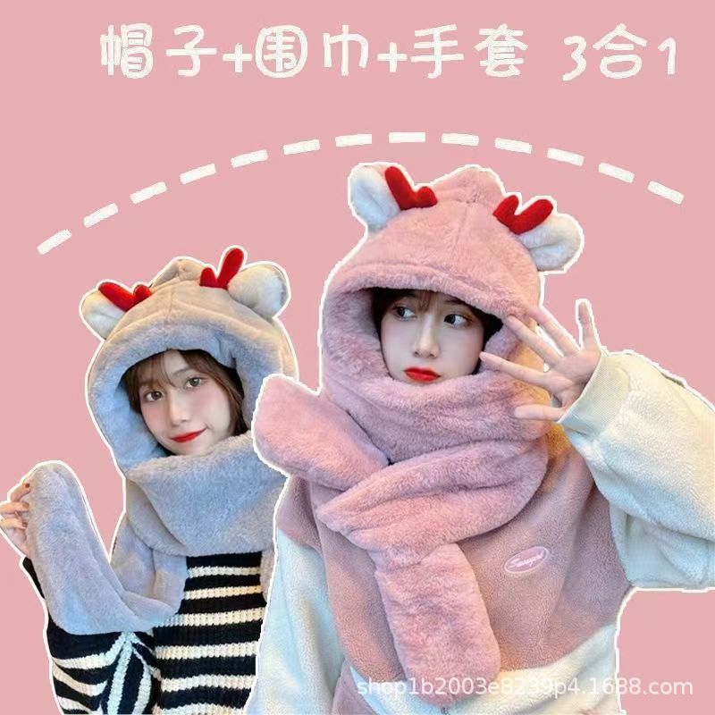 | nameOriginal | Hat scarf gloves integrated hat autumn and winter Korean style versatile warm toe cap winter cute plush double layer hat for women |