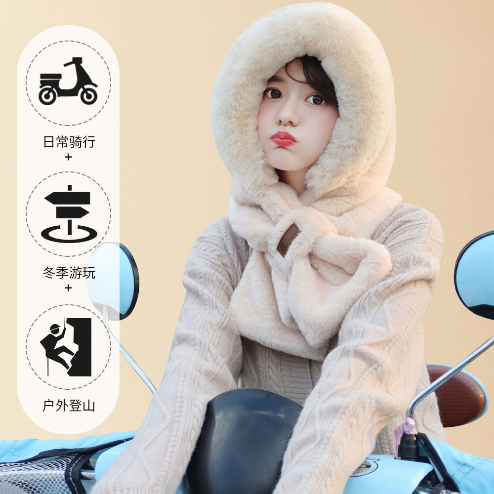Hat scarf integrated 2024 Winter cycling windproof ear protection thickened warm plush hat all-match plush scarf