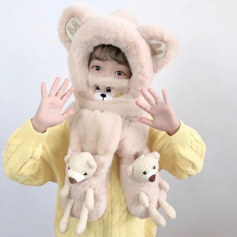 | nameOriginal | Hat Scarf One 2023 Winter New Autumn and Winter Children Windproof Warm Cute Bear Scarf Cap |