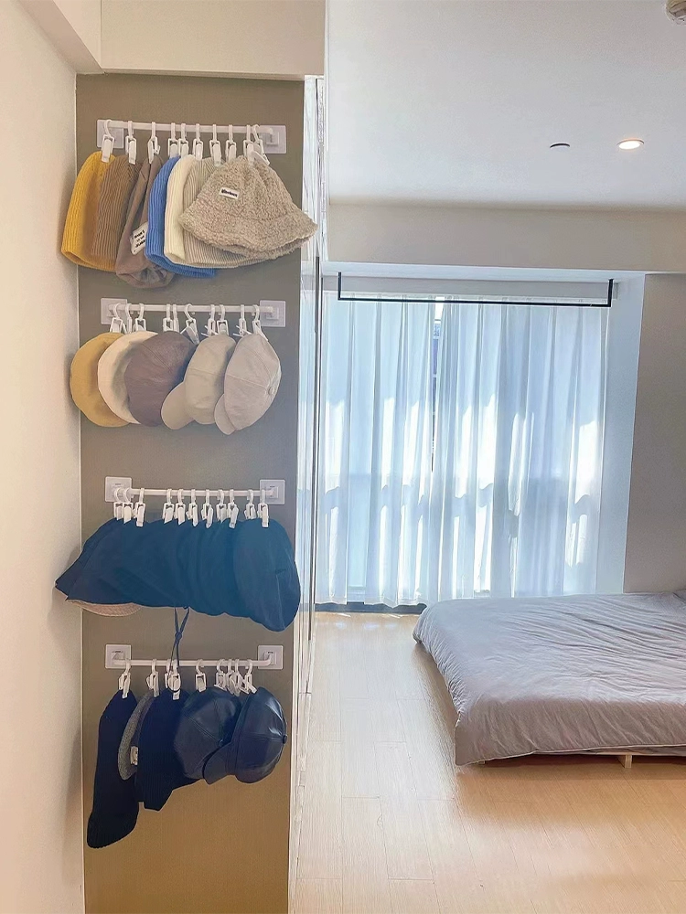 | nameOriginal | Hat storage artifact hanging hat storage rack one-line multi-clip dormitory hook sock rack no punching wall hanging |