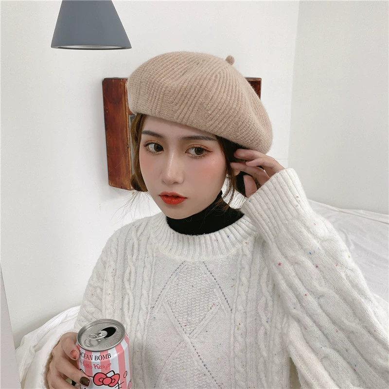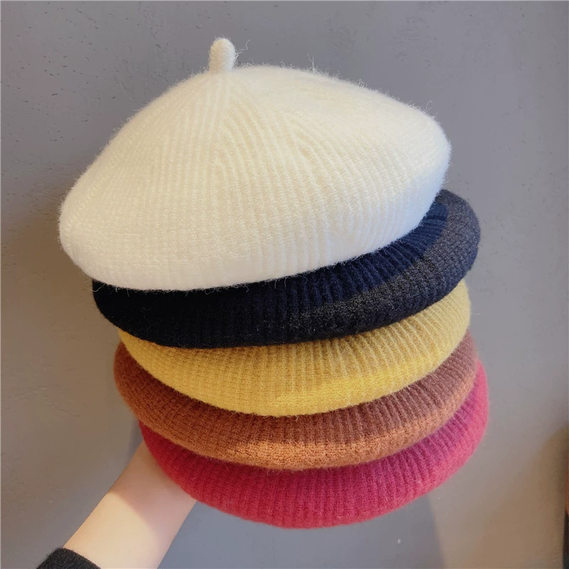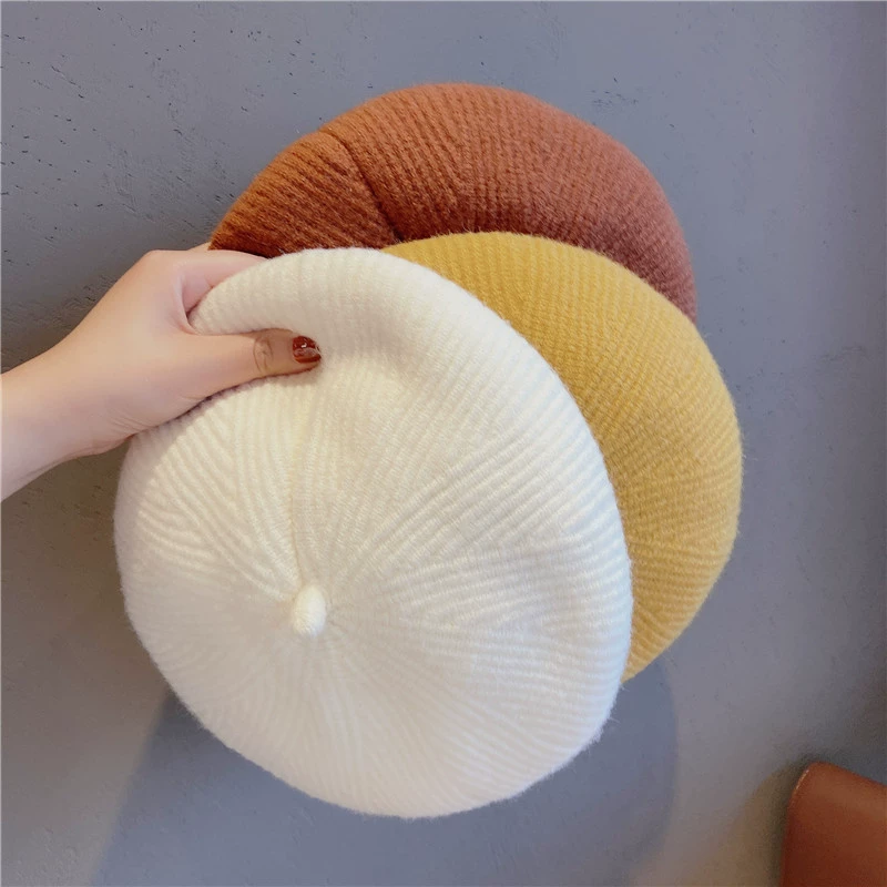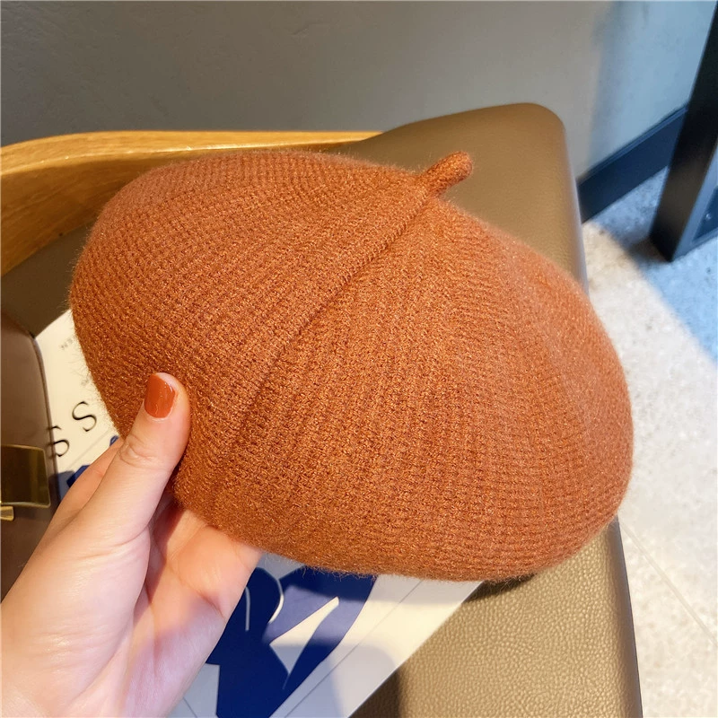 Hat women’s autumn and winter knitted beret versatile British Korean version Japanese retro knitted painter pumpkin bud hat trend