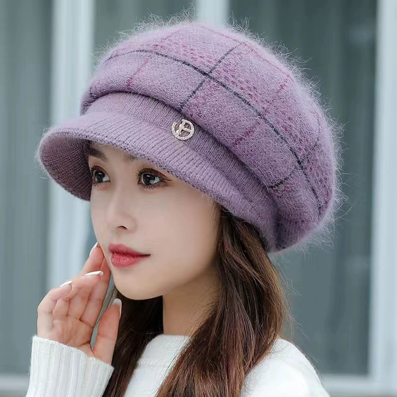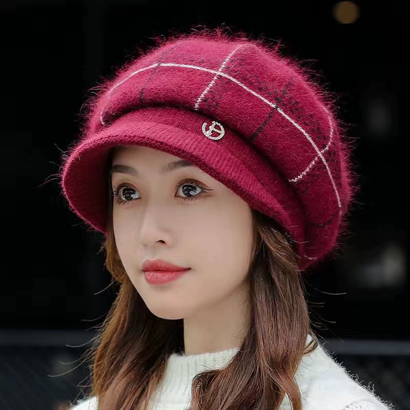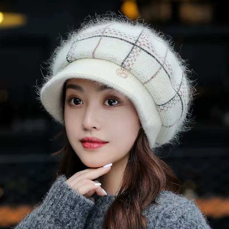 Hat women's autumn and winter Korean style fashionable velvet thickened ear protection warm duck tongue beret rabbit fur knitted woolen hat
