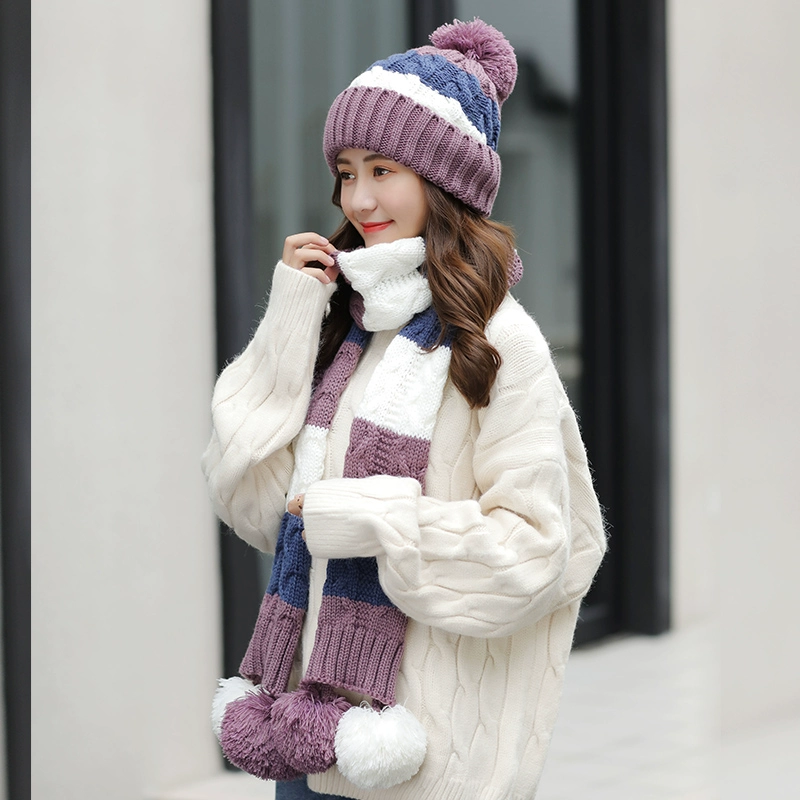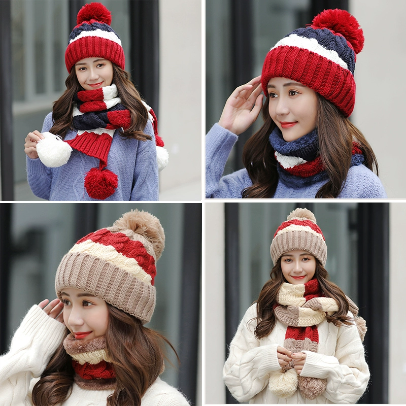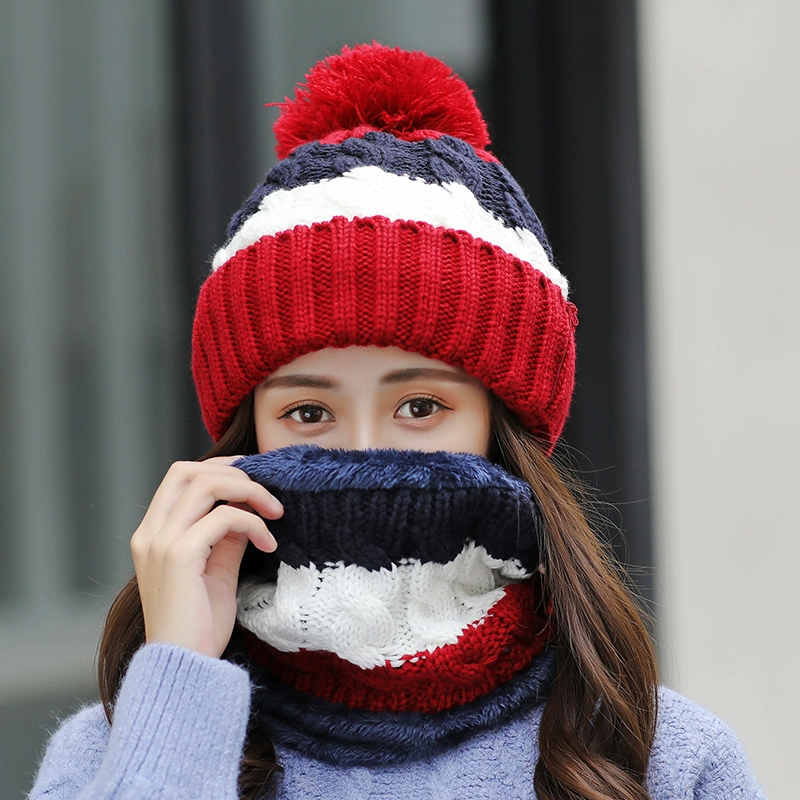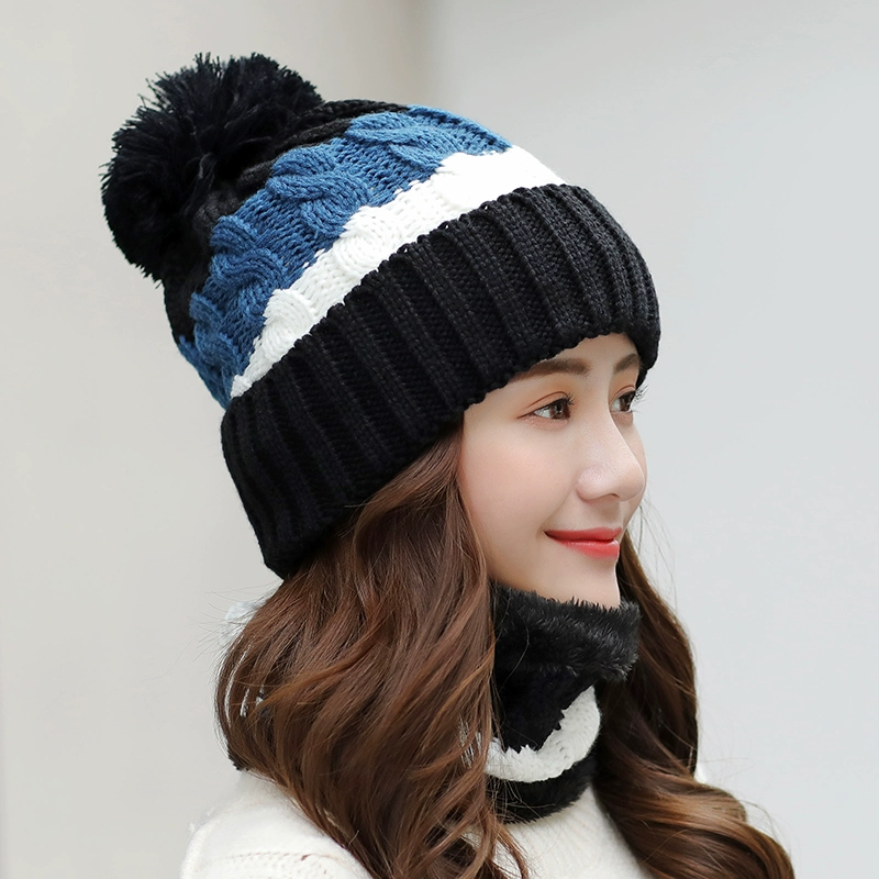 Hat women's autumn and winter Korean version thickened knitted warm hat neck scarf windproof winter cycling ear protection woolen hat versatile