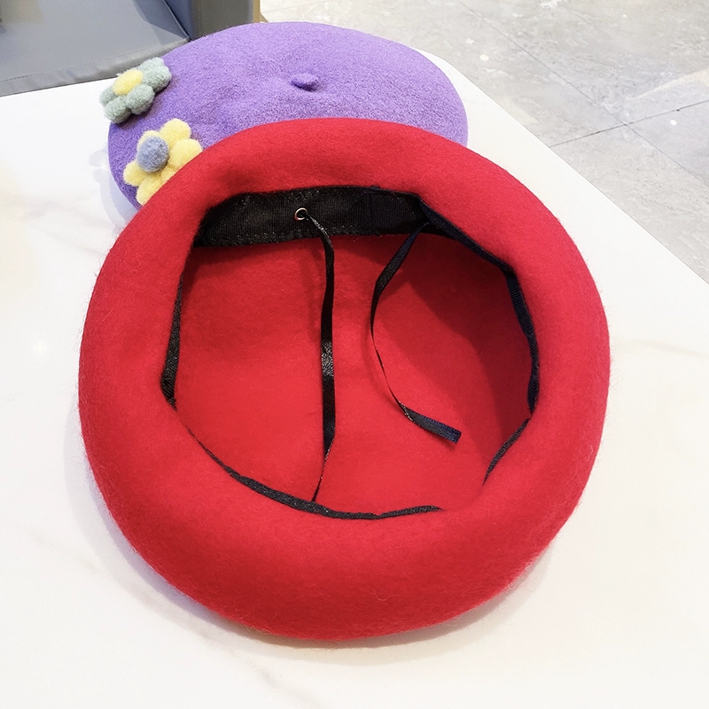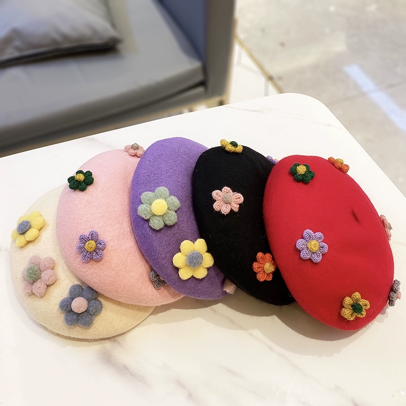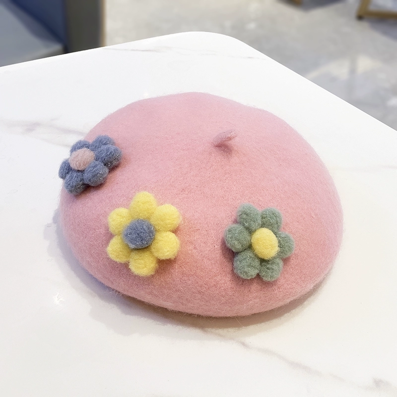 Hat women's autumn and winter parent-child woolen flower beret small fresh Korean version trendy versatile fashion painter hat bud