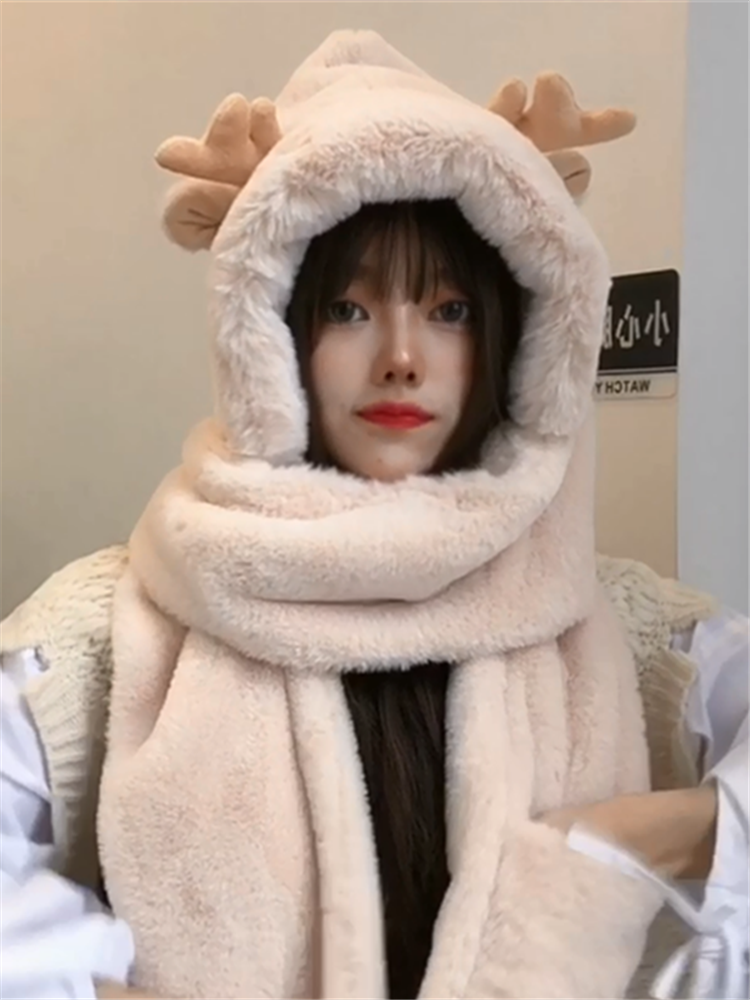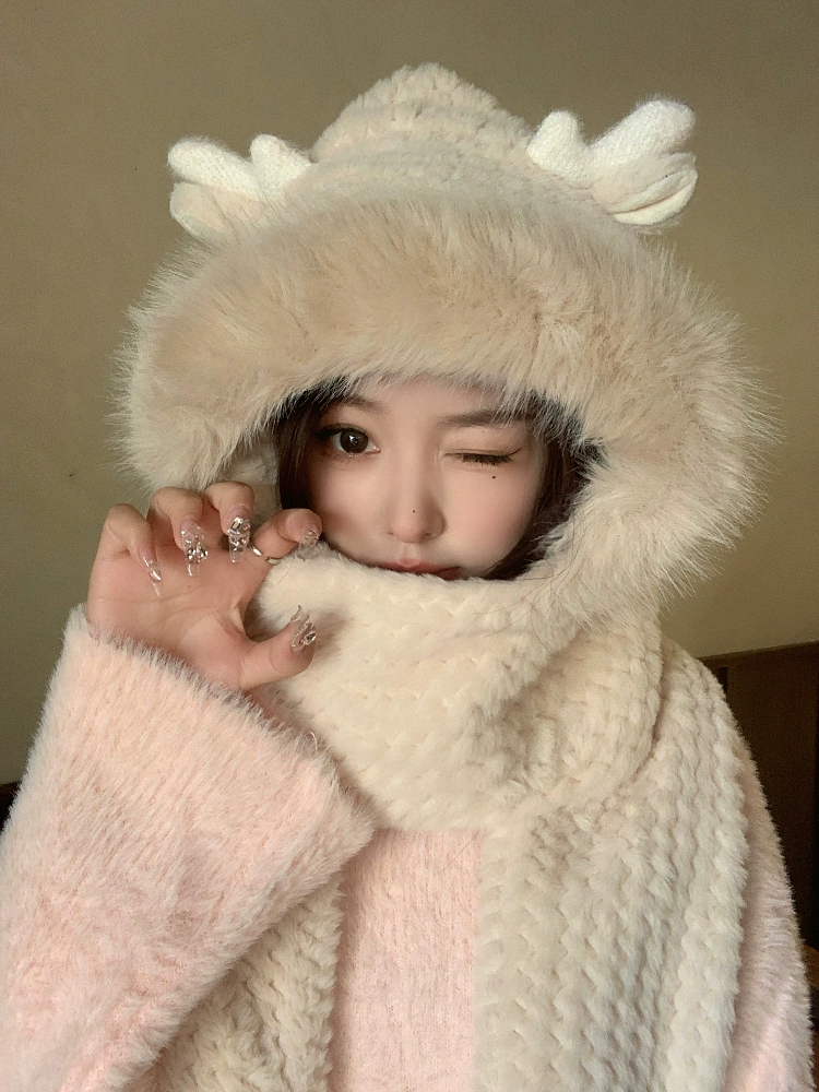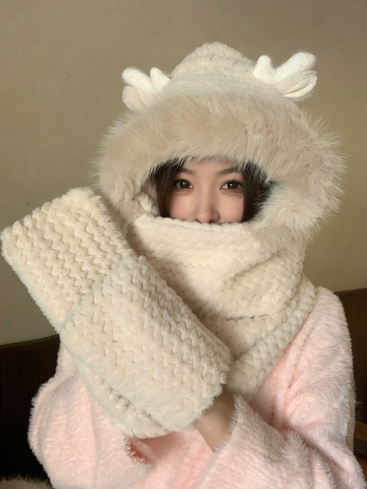 | nameOriginal | Hat women's autumn and winter scarf all in one cute Korean version Chao Lei Feng hat winter gloves three-piece set ear protection plus velvet to keep warm |