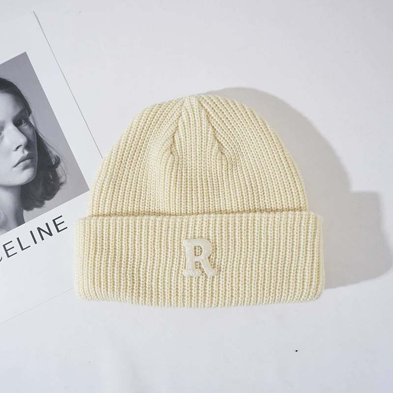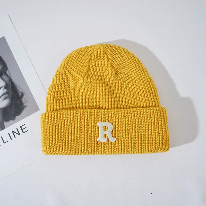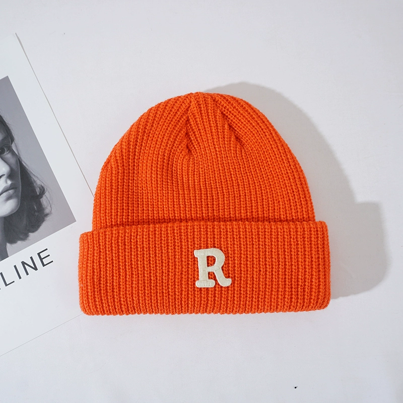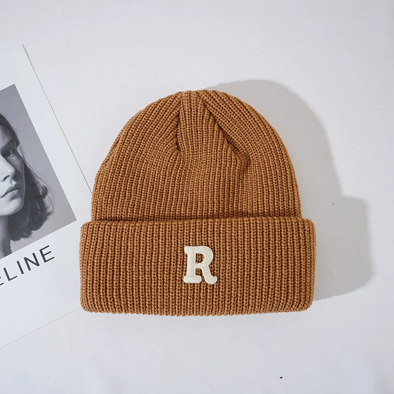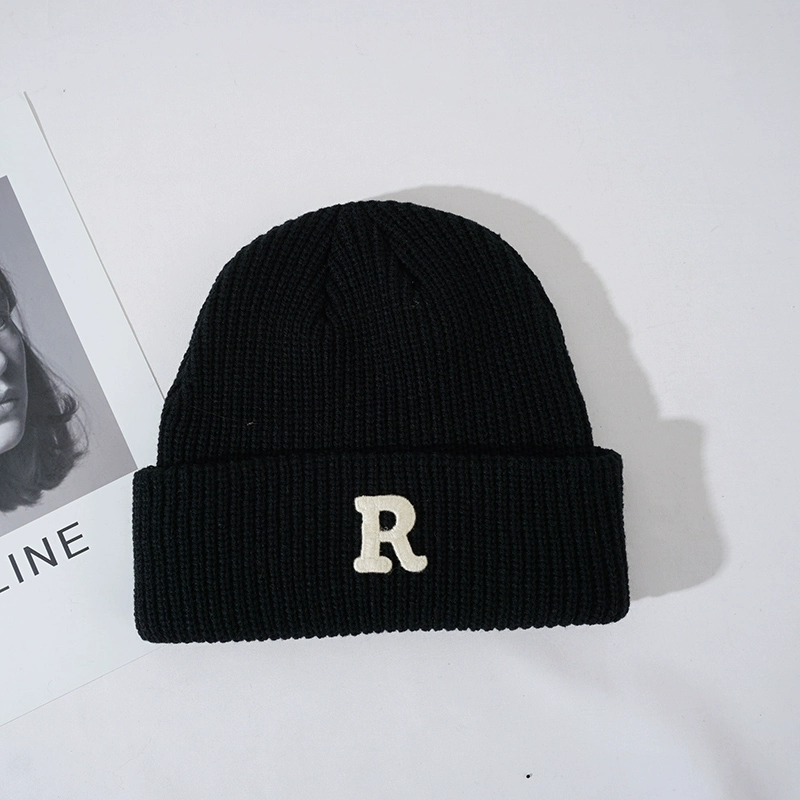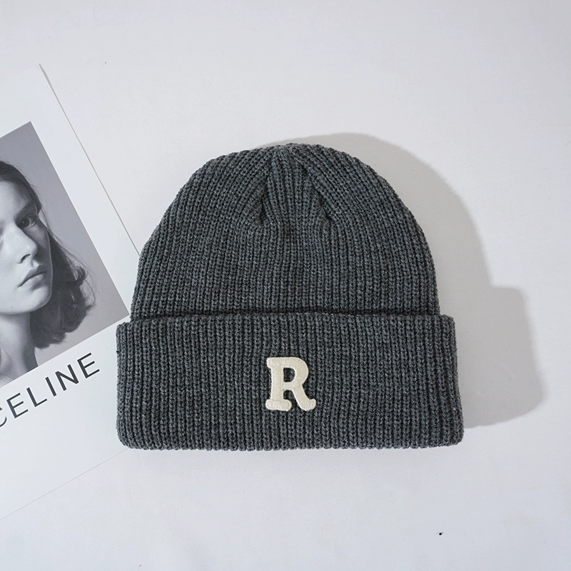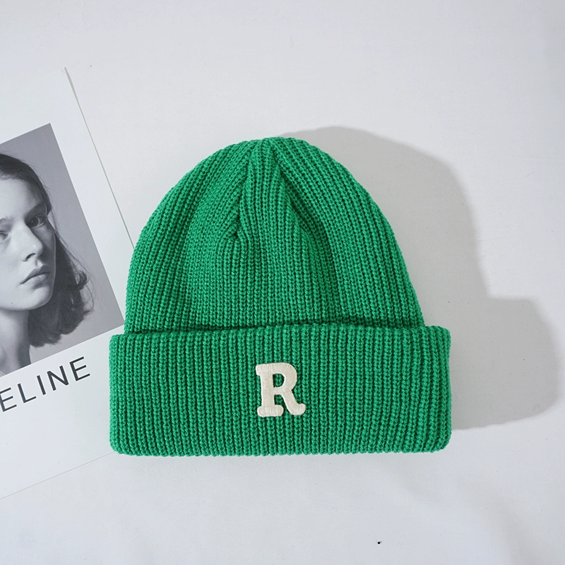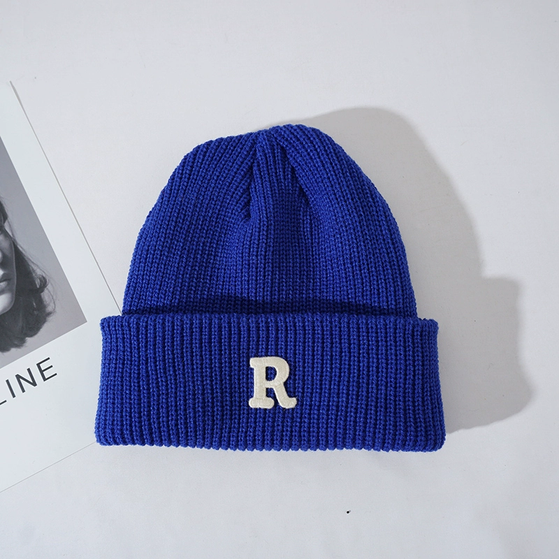 Hat Women's Autumn and Winter Versatile Warm Woolen Hat Korean Version Ins Internet Celebrity R Letter Knitted Hat Klein Blue Pullover Hat