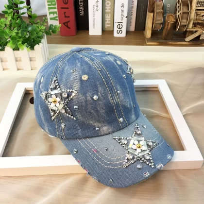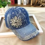 Hat Women’s Spring and Autumn Bright Diamond Flower Cowboy Hat Fashionable Versatile Baseball Cap Anti-Visor Cap Peaked Hat Men’s Trendy