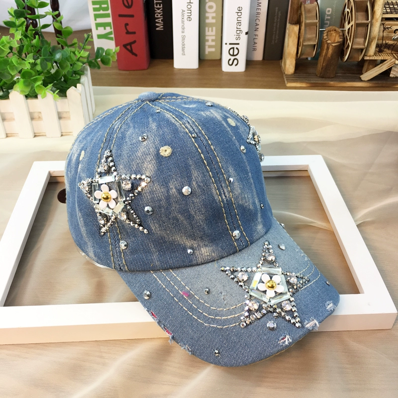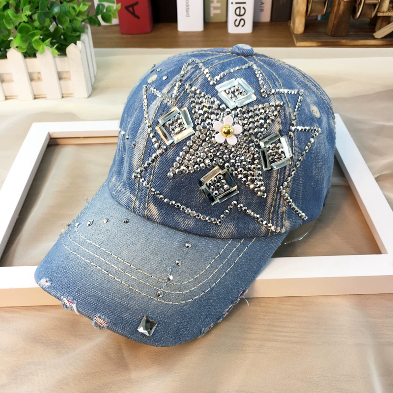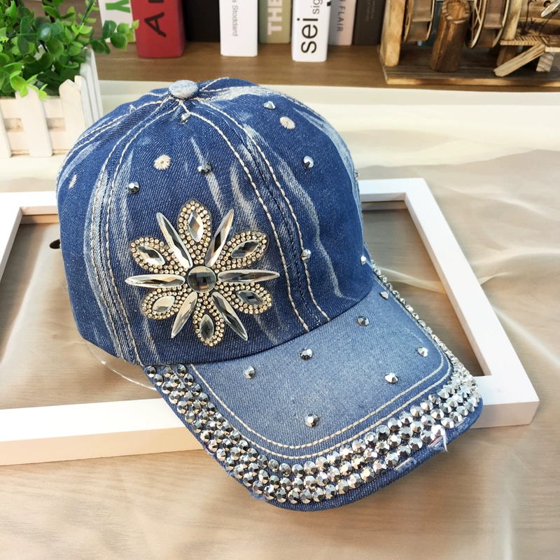 Hat Women's Spring and Autumn Bright Diamond Flower Cowboy Hat Fashionable Versatile Baseball Cap Anti-Visor Cap Peaked Hat Men's Trendy