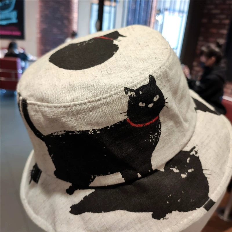 | nameOriginal | Hat Women's Spring and Summer Outdoor Leisure Sun Hat Cute Cat Cotton and Linen Fisherman Hat Korean Version Versatile Printed Basin Hat for Men |