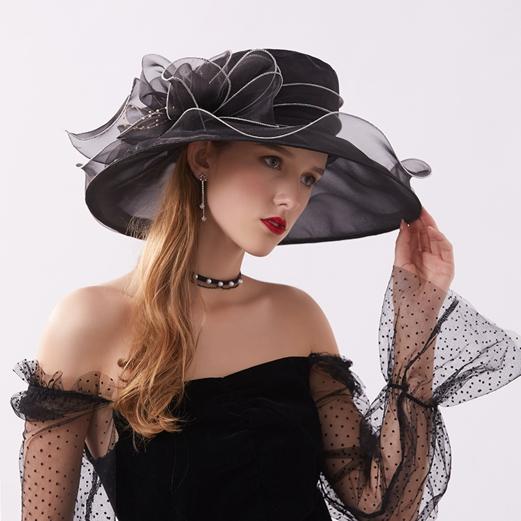 Hat Women's Summer Sun Hat Travel Sun Protection Sun Hat Large Brim Flower Organza Folding Fashionable Versatile Beach Hat