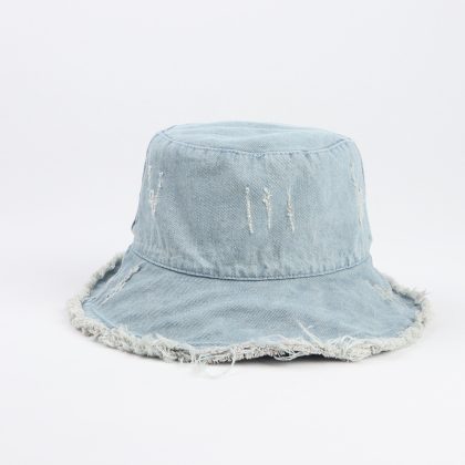 Hat Women’s Summer Vintage Washed Denim Fisherman Hat Japanese Style Ruffled Sunscreen Basin Hat Korean Style Big Brim Hat